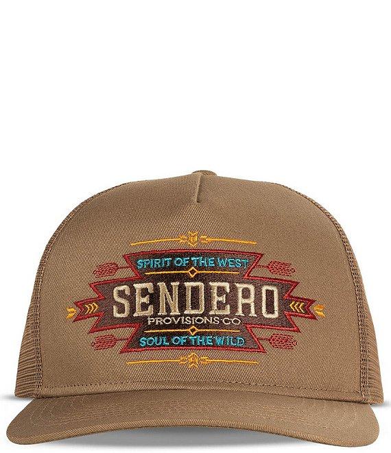 From Sendero Provisions Co., this hat features: Embroidered detail on front Semi-curved visor 5-panel Structured mesh back Snapback Twill Imported.