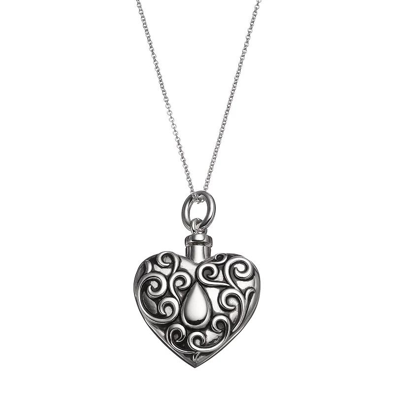 Designed with an ornate filigree heart motif, this sterling silver ash holder necklace offers a meaningful way to keep your loved one close.PENDANT DETAILS Pendant length: 1.5 in. Chain length: 18 in. Clasp: spring-ring Metal: sterling silver Plating: rhodium Includes: filling kit, black pouch, poem card & gift box Size: 18. Color: Grey. Gender: female. Age Group: adult. Material: Sterling Silver|Rhodium.
