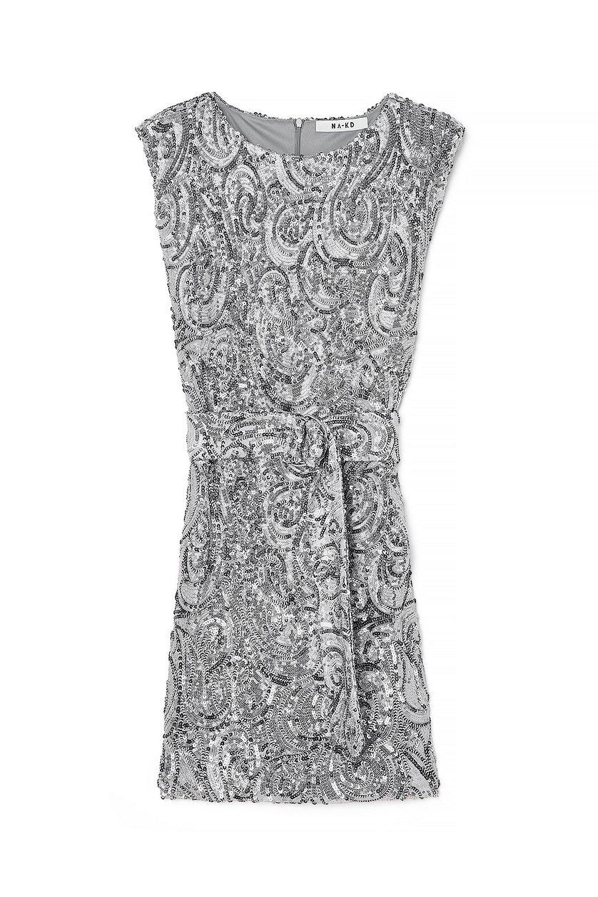Sequin Belted Big Shoulder Mini Dress