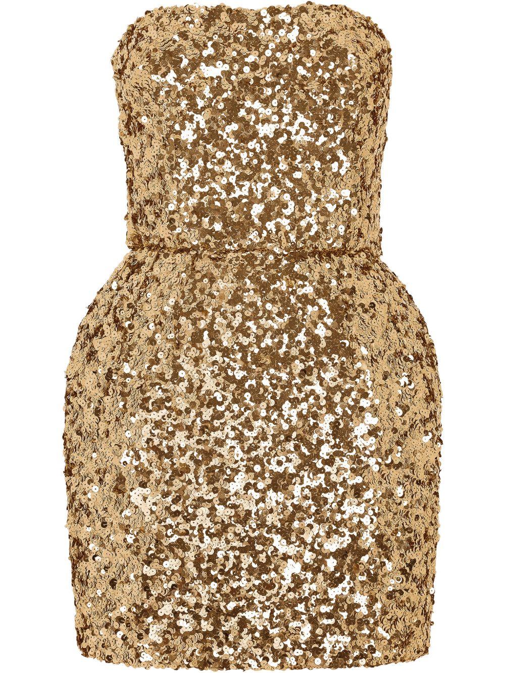 Dolce & Gabbana sequin-embellished strapless minidress | Gold | gold-tone | sequin embellishment | metallic sheen | strapless | fitted waistline | concealed fastening | thigh-length | straight hem | Polyamide | Cocktail & Party Dresses | Dresses | Clothing | Women