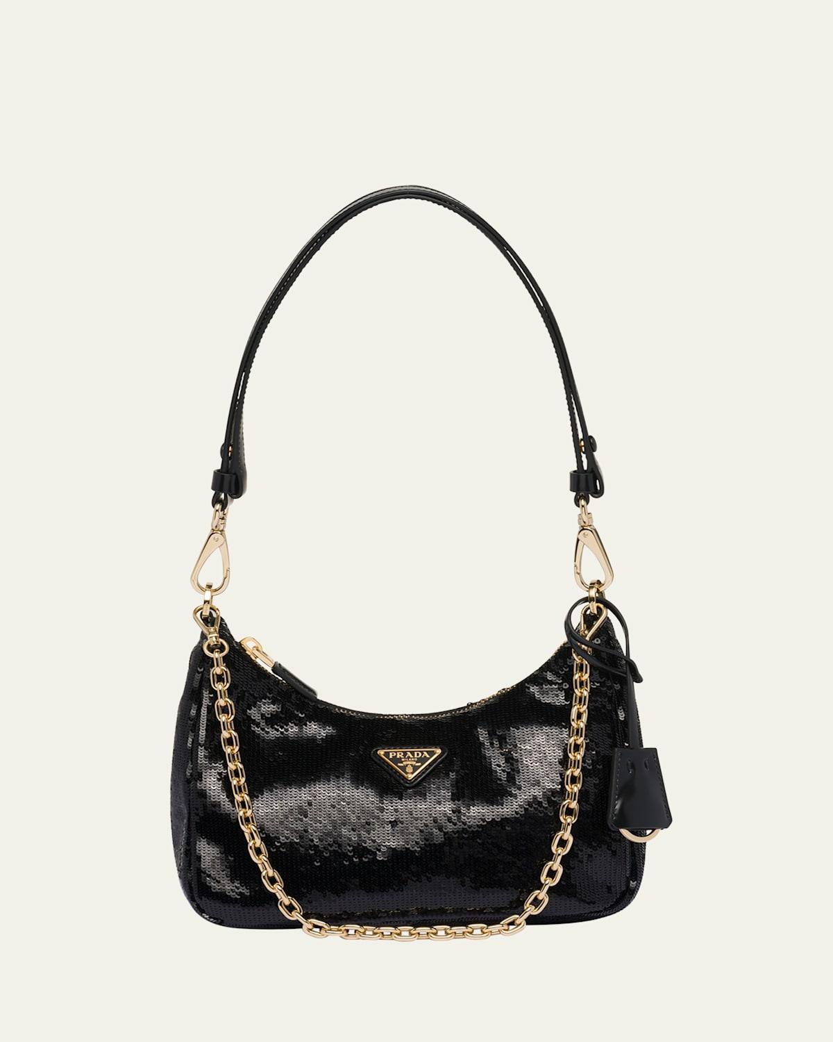 Re-nylon and sequin mini-bag. Detachable, adjustable chain and leather handle Removable leather key ring Metal hardware Enameled metal triangle logo on the front Zipper closure Logo-print Re-Nylon lining Made in Italy SIZE W 22 x H 18 x L 6 cm / W 8.6 x H 7 x L 2.3 in. Lsd Handbags - Prada Handbags Access > Prada > Saks Fifth Avenue > Barneys. Prada. Color: Pink.