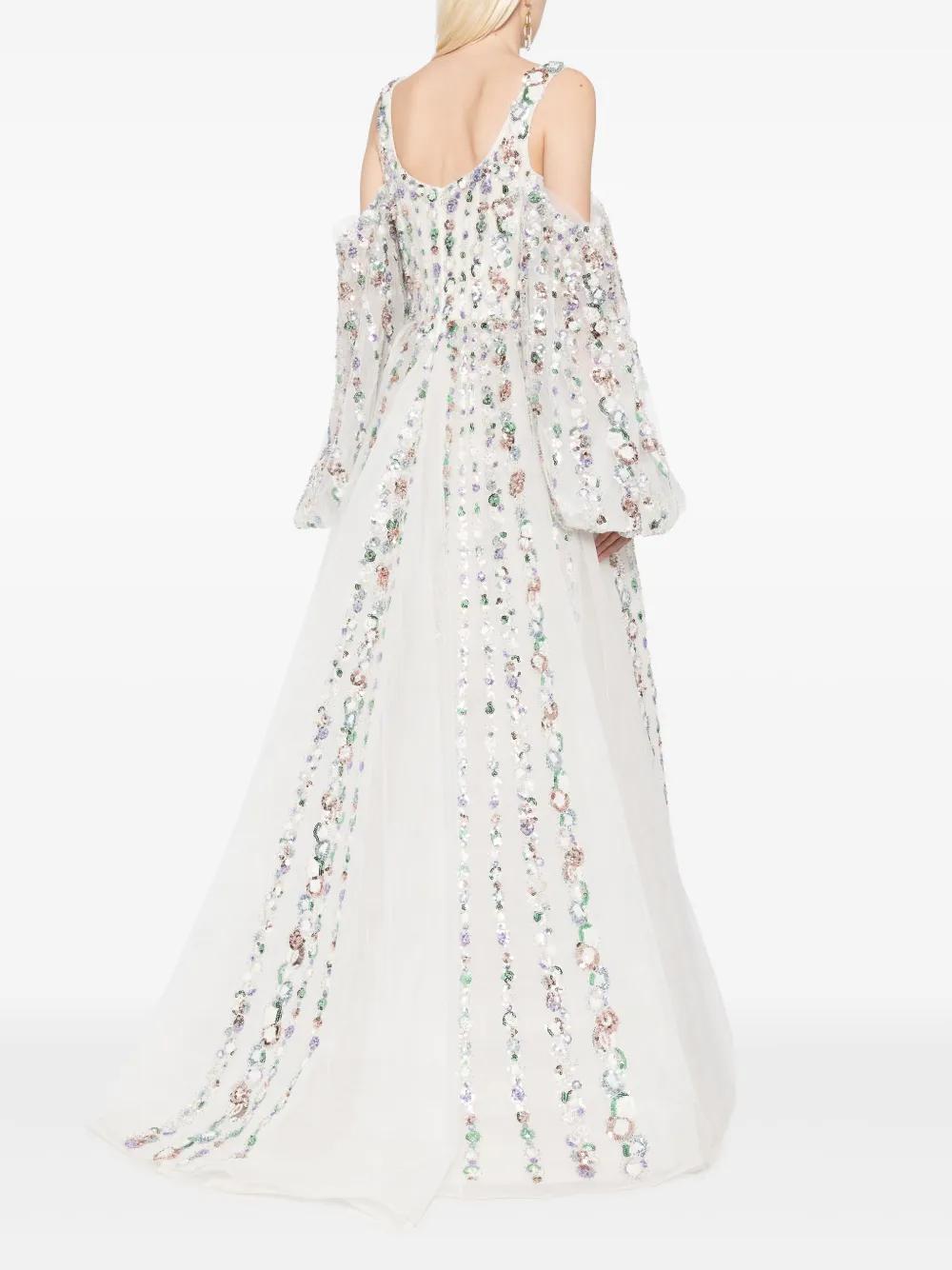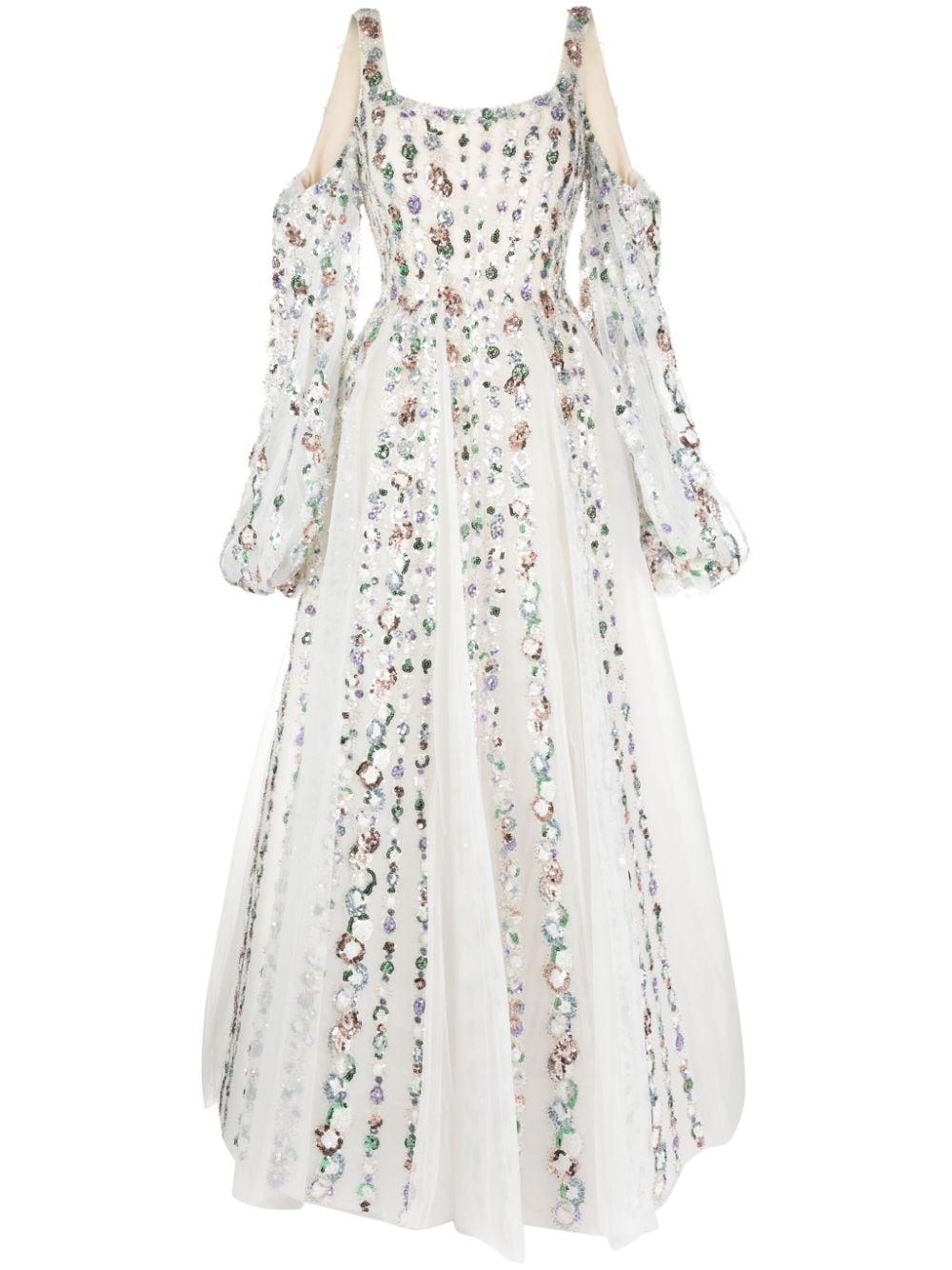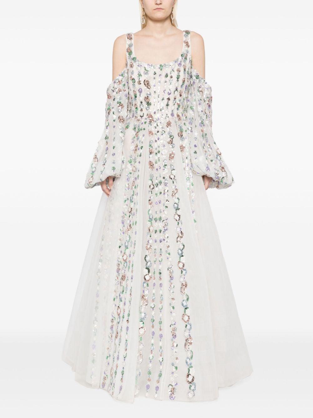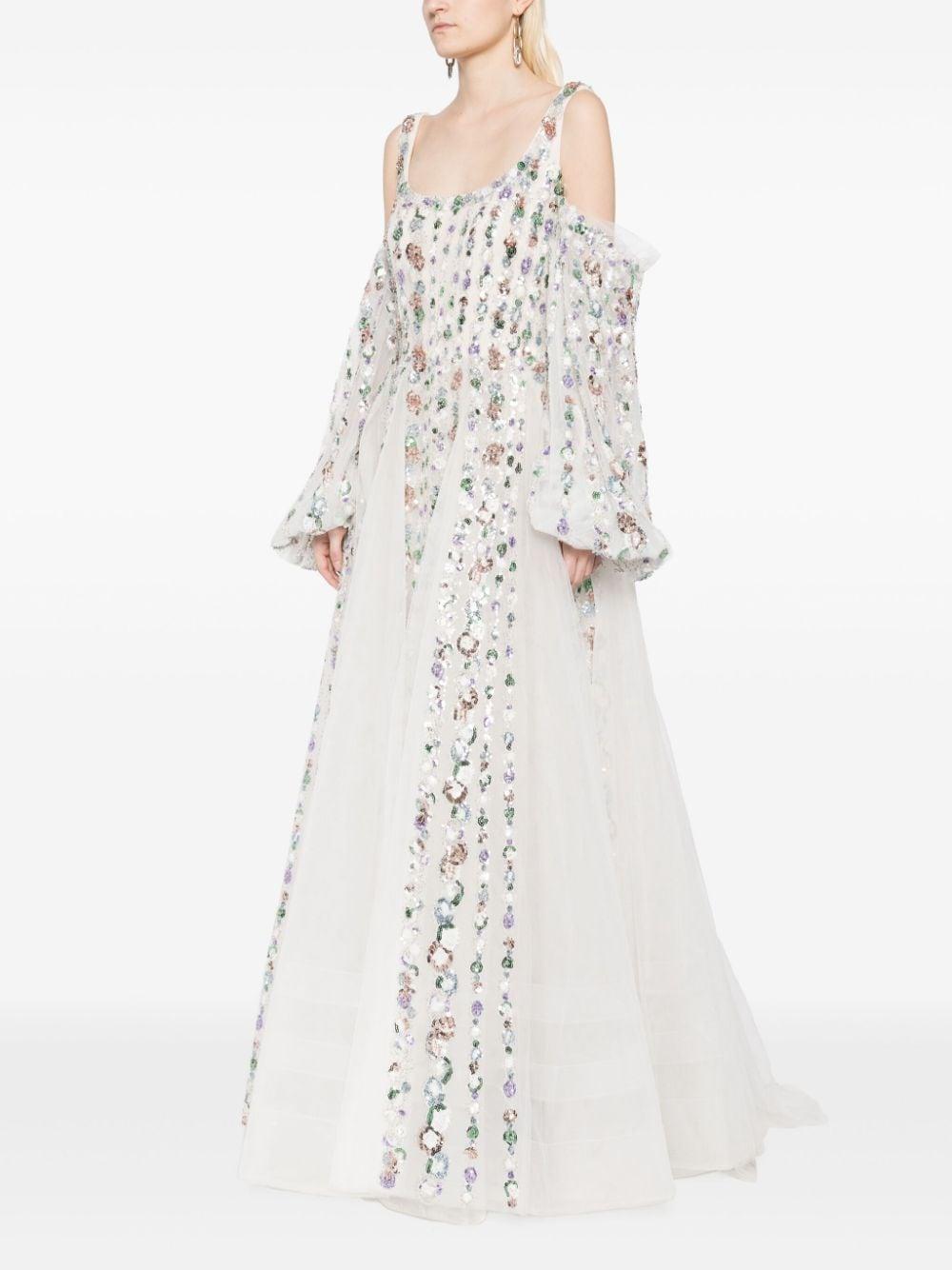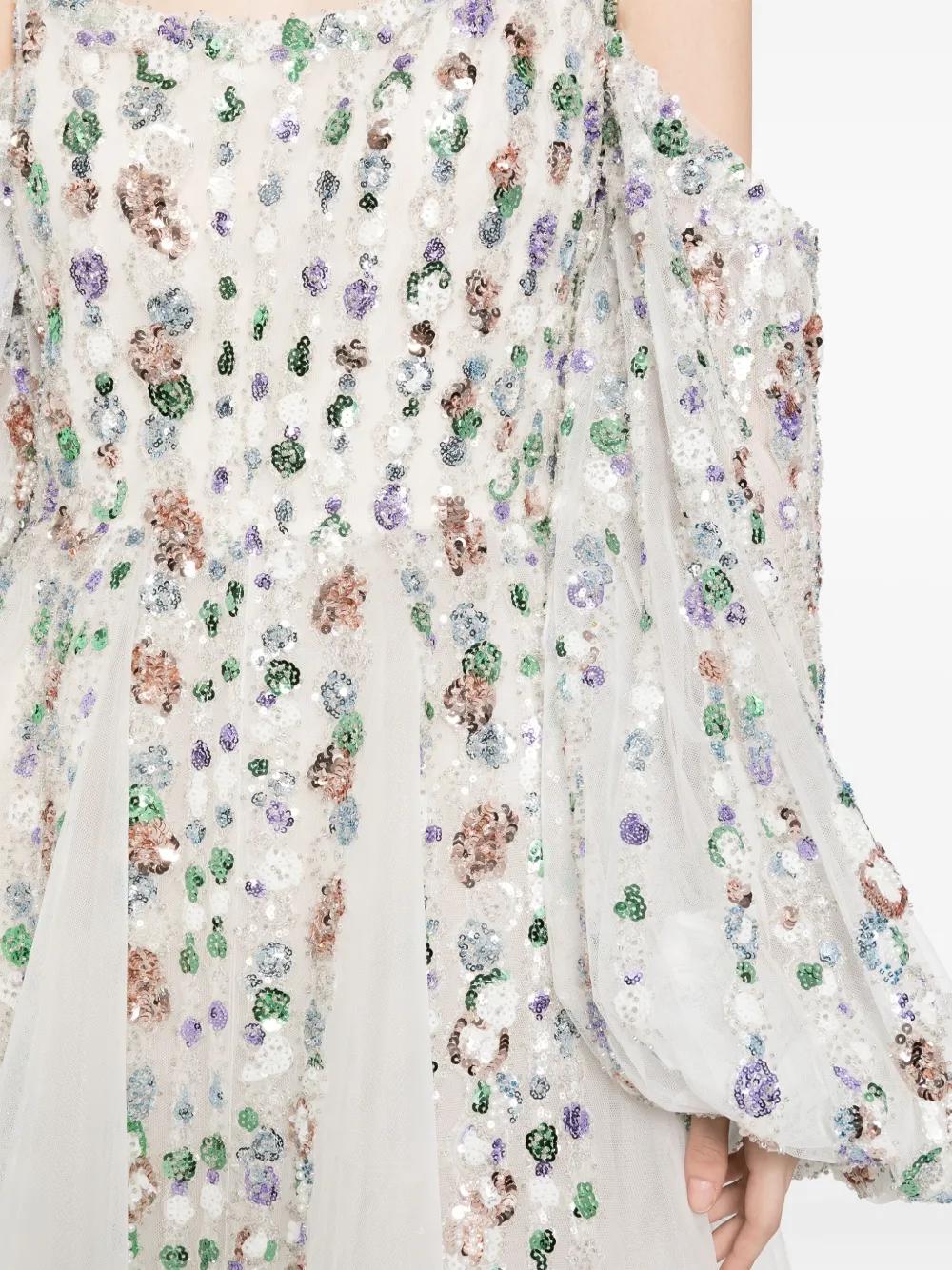 sequinned cold-shoulder tulle dress
