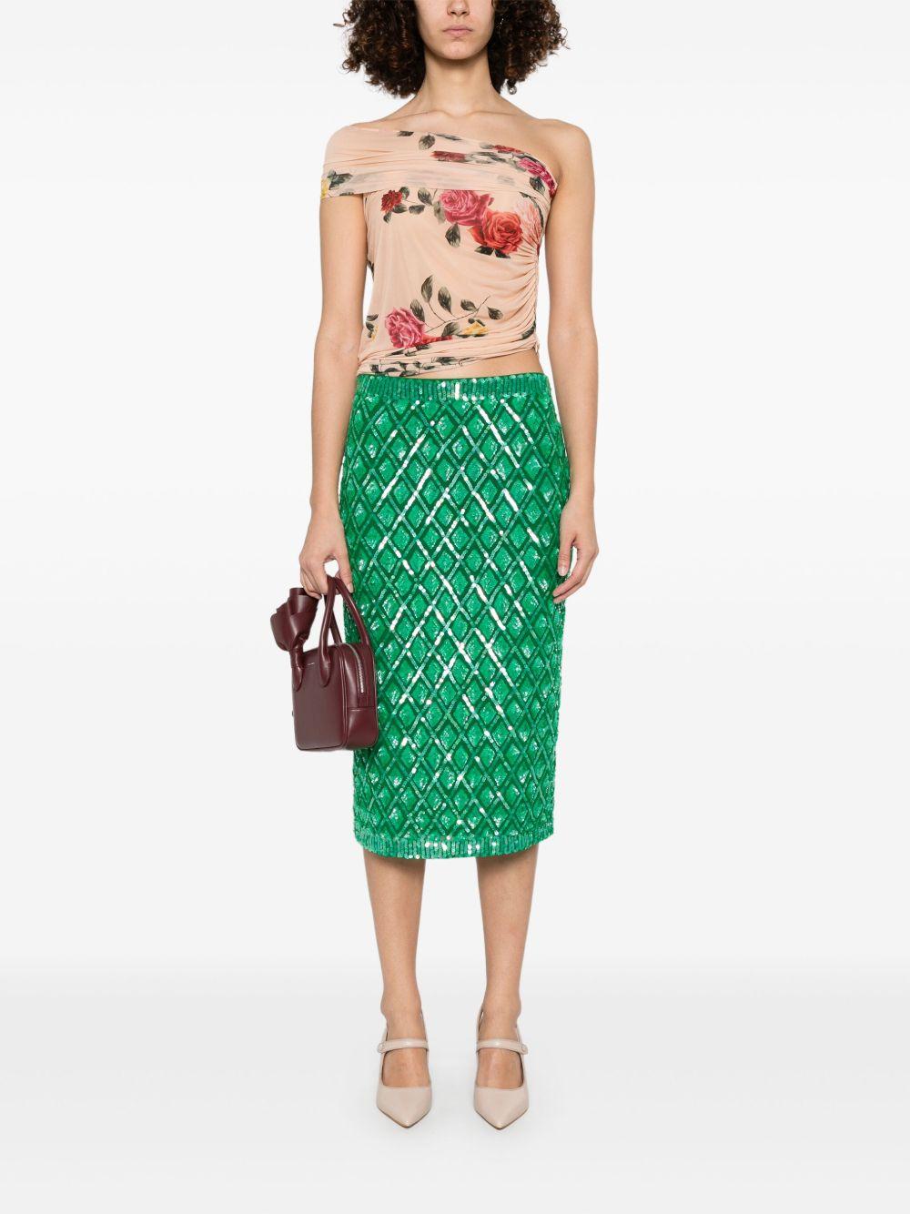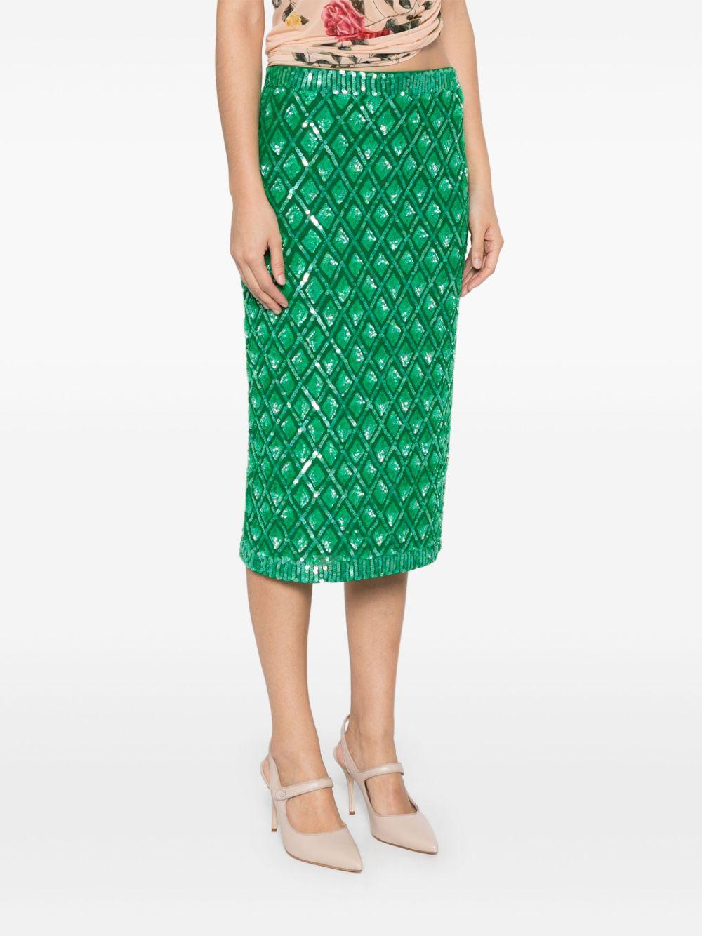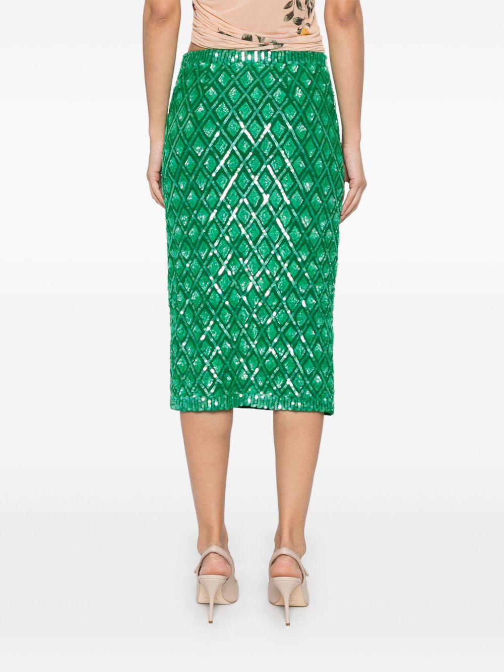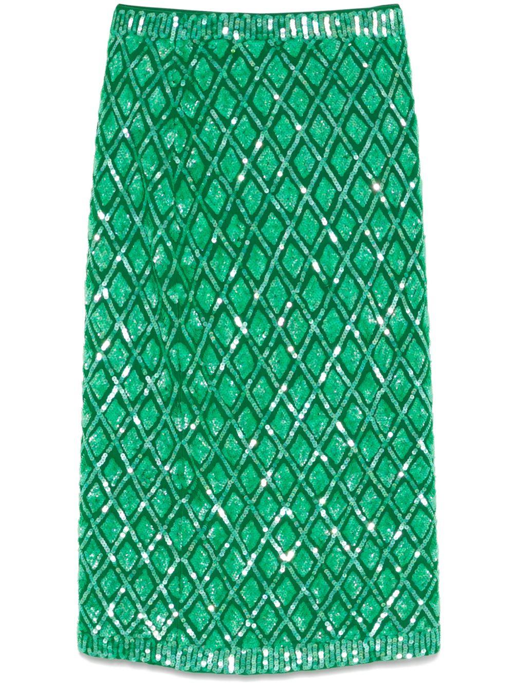 P.A.R.O.S.H. sequinned midi skirt | Green | grass green | elasticated waistband | full lining | straight hem | PVC/Polyamide/Spandex/Elastane/Polyamide/Spandex/Elastane | Straight Skirts | Skirts | Clothing | Women