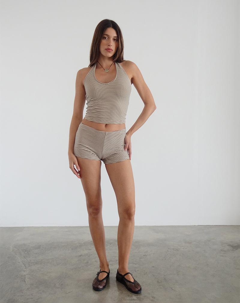 The Sera micro shorts, made from a super soft jersey fabric in yellow and grey stripes, feature a micro short length and an elasticated waistband for comfort and ease of wear. Pair with our matching Jules top. MODEL WEARS SIZE: SMALL - MODEL HEIGHT:5'9