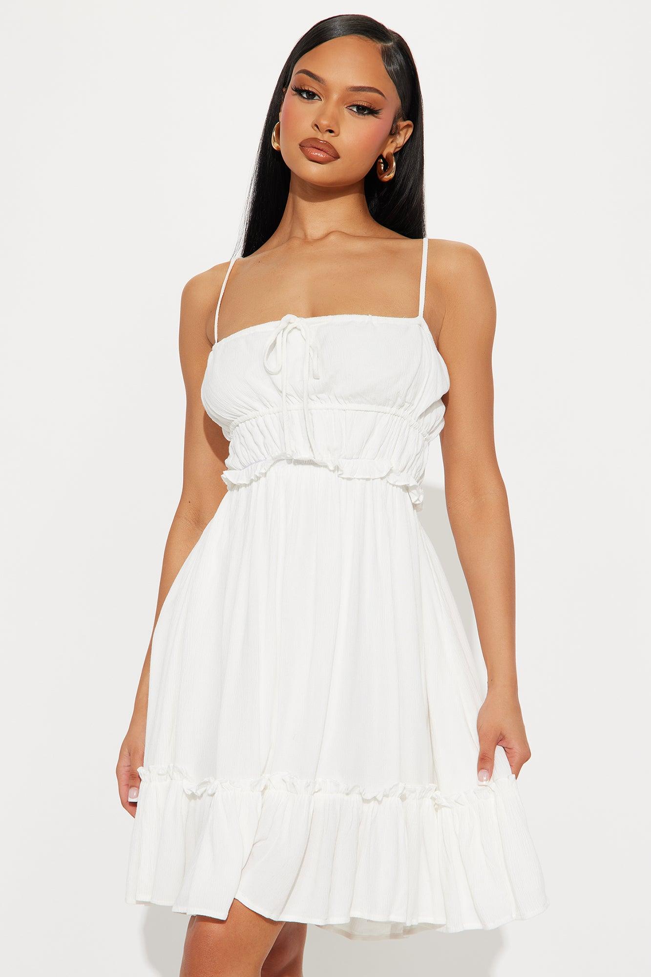 Available In Coral, Chartreuse, And White. Mini Dress Adjustable Spaghetti Straps Backless Tie Back Babydoll Self: 100% Rayon Lining: 100% Rayon Imported
