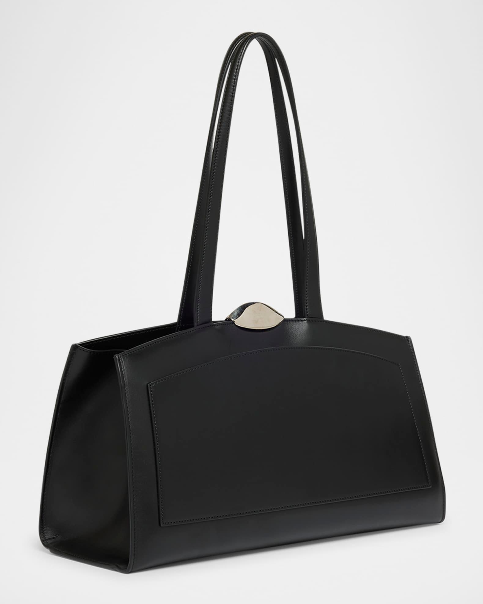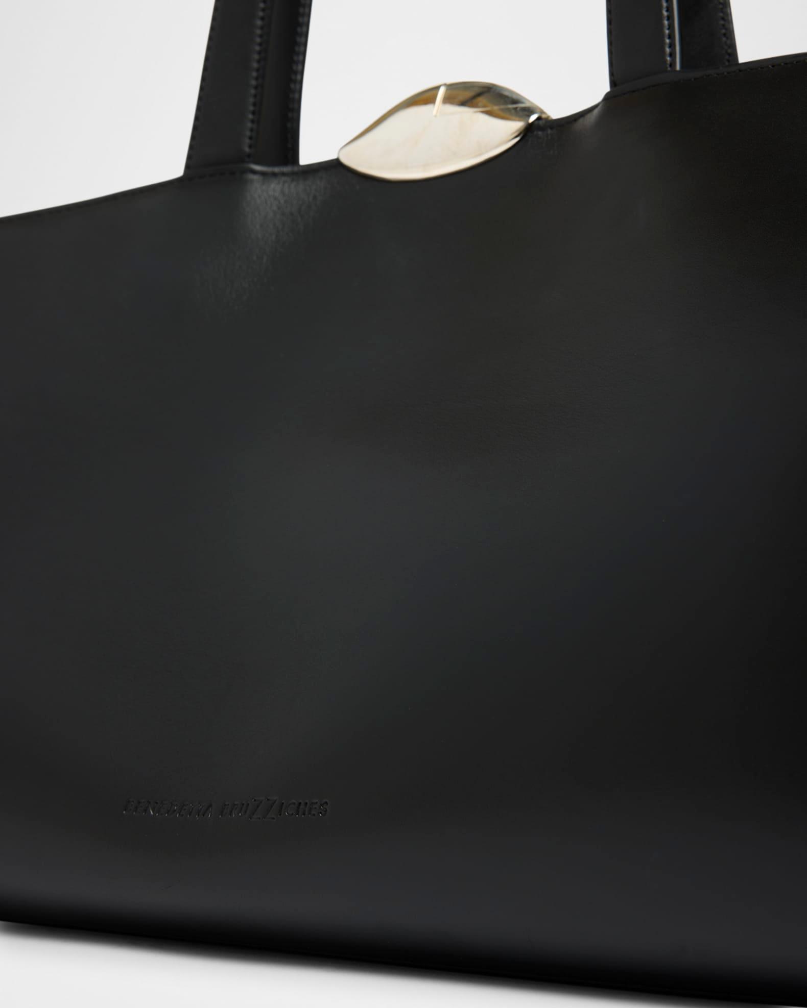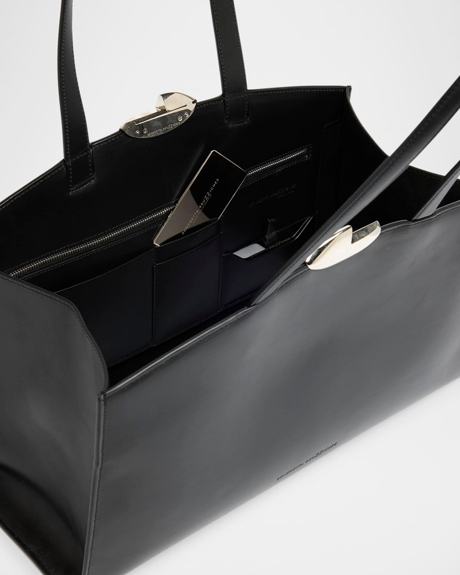 Benedetta Bruzziches "Serena" shoulder bag in leather and aluminum Shoulder straps Framed top with kiss-lock closure Interior, one zip pocket, four slip pockets Approx. 9.4"H x 15.8"W x 6.3"D Item Weight (Lbs.): 1.8 Professional cleaning recommended Made in Italy