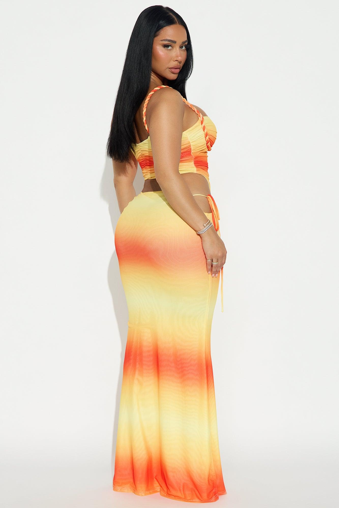 Serena Mesh Maxi Skirt Set - Yellow/combo