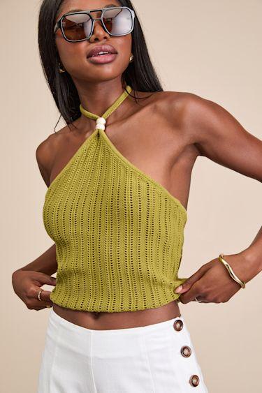 This cute lil' sweater knit top will make sure you look trendy from every angle this season, thanks to a chic tying halter neckline accented with white marbled beads. The slightly fitted silhouette ends at a flirty cropped hem that styles perfectly with low, mid, or high-rise bottoms (all you've got to do is choose).