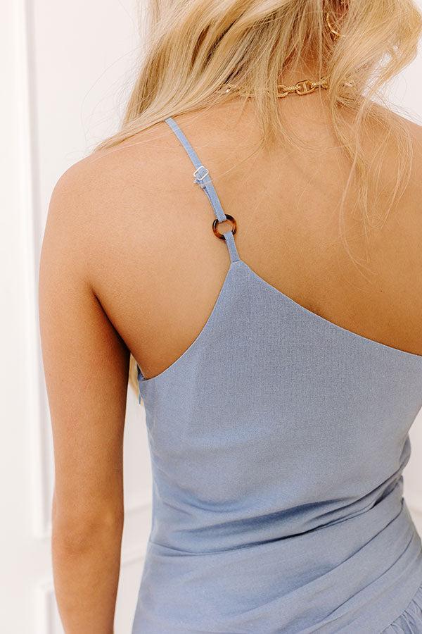 - This elegant maxi has chic details! Its asymmetrical neckline and pleated accents make it a stylish choice for special plans, evenings out, or any moment that calls for a little drama.