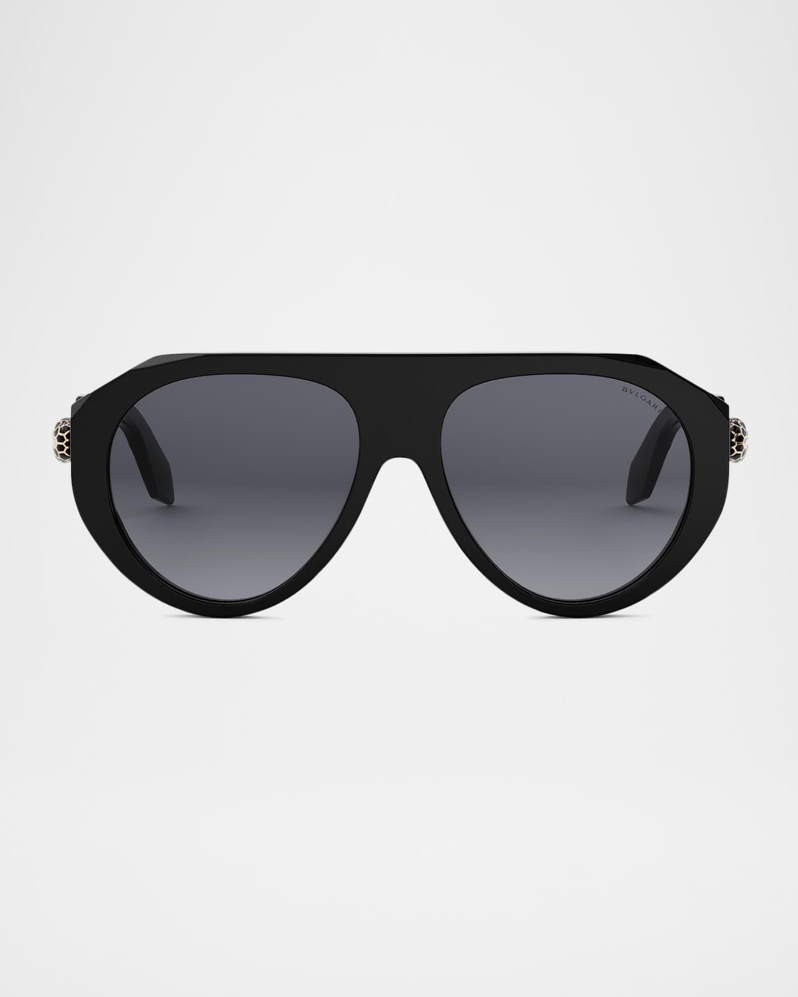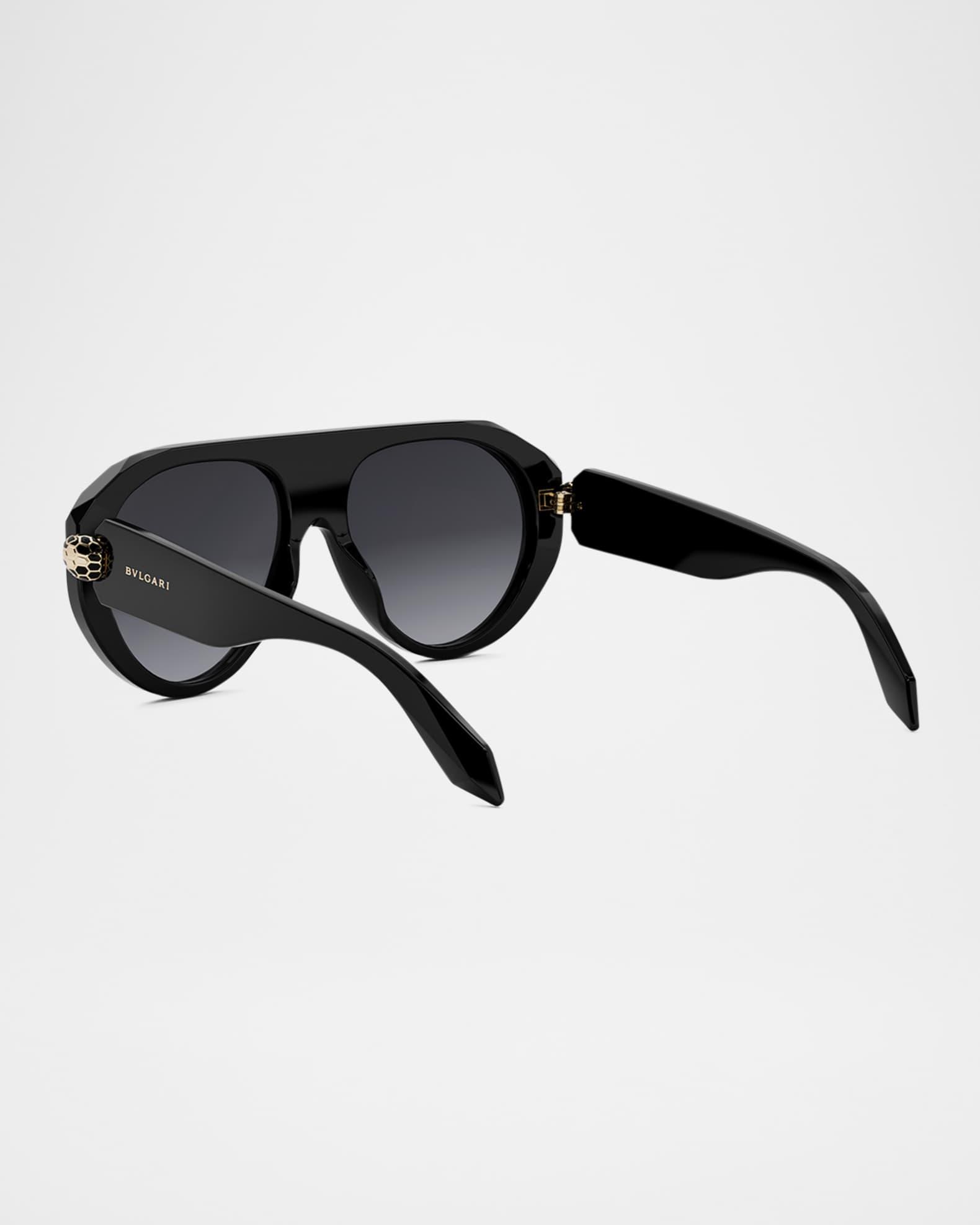 BVLGARI "Serpenti Forever" aviator sunglasses in acetate Lens/bridge/temple (in mm): 56-16-140 Gradient lenses; logo on corner Saddle nose bridge Logo on temples Thin, tapered arms Acetate 100% UVA/UVB protection Made in Italy Proposition 65 warning for California residents