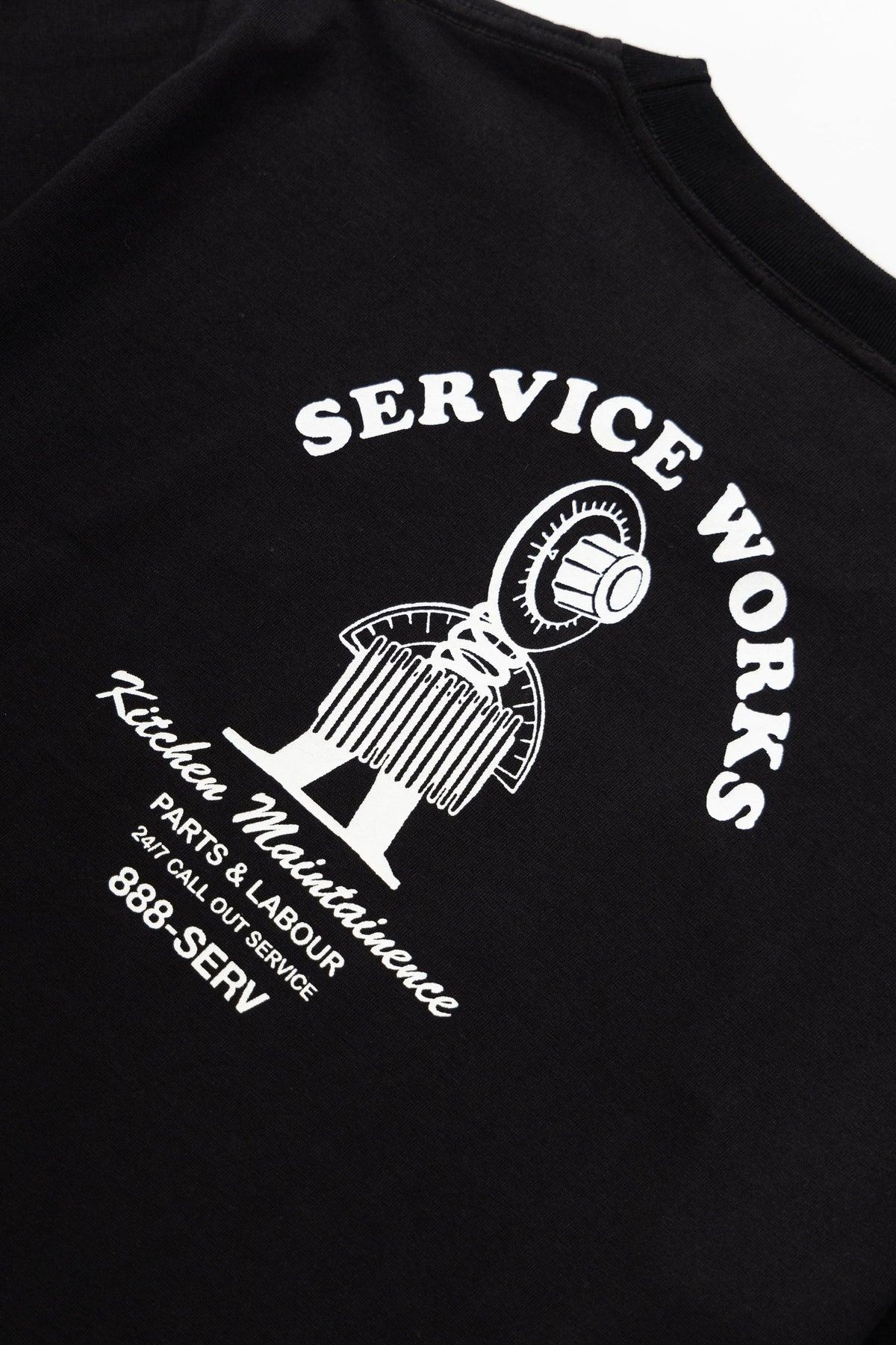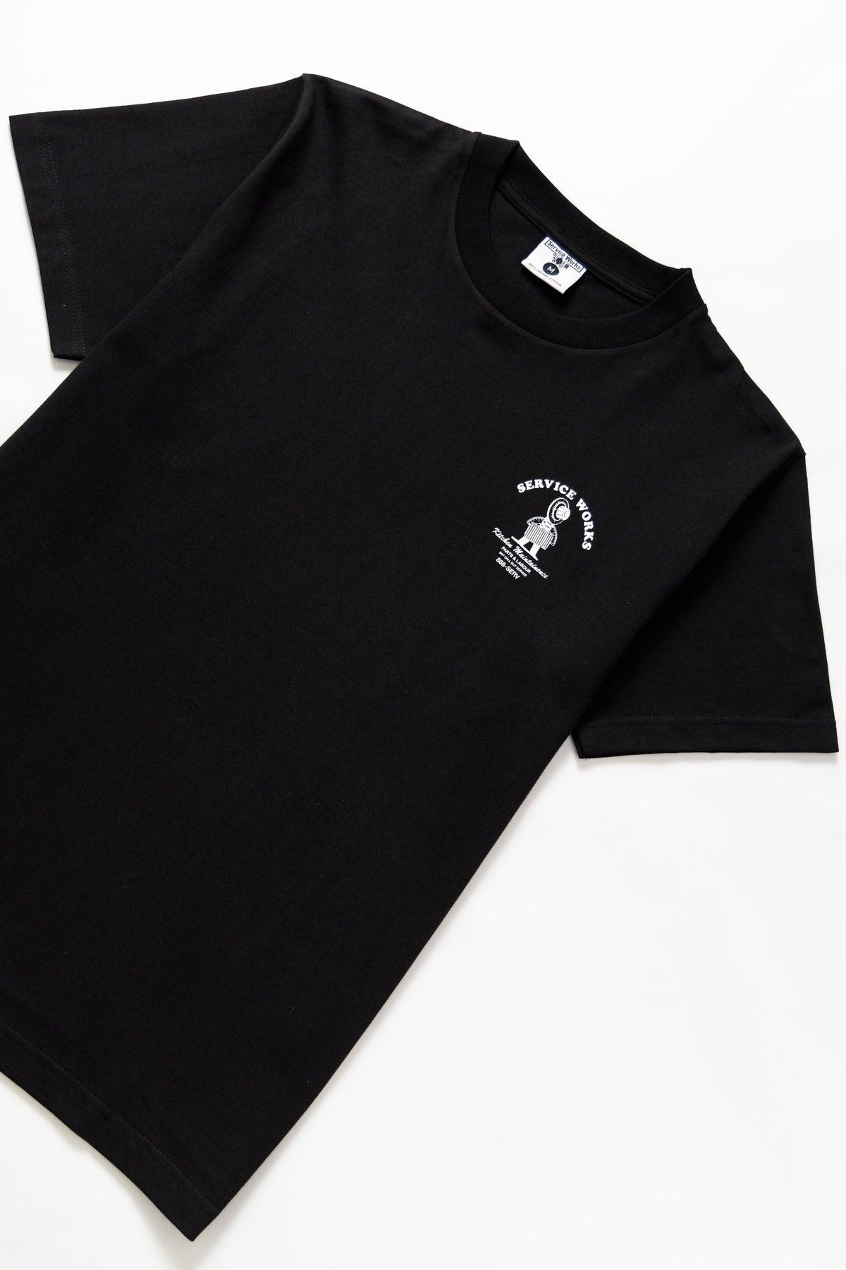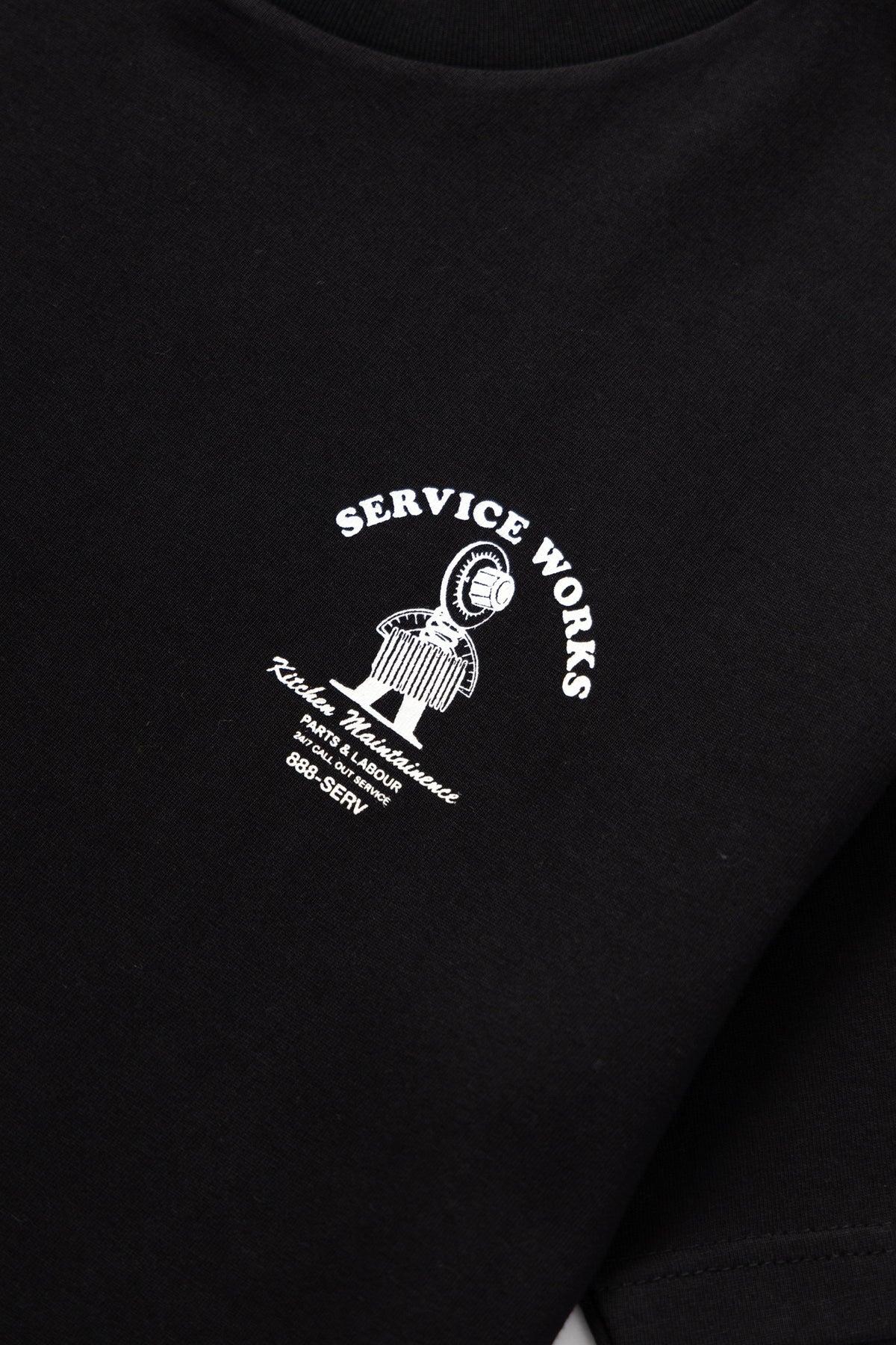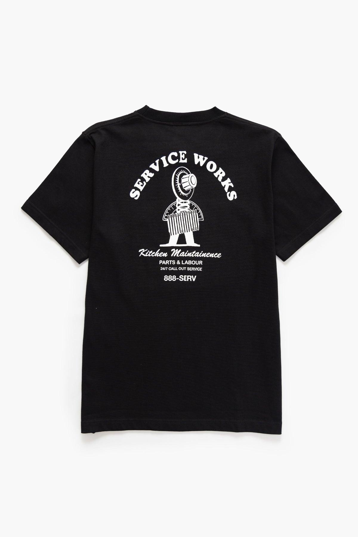 Maintainence Tee by Service Works Constructed with 250GSM GOTS Organic cotton Screen printed graphics Top stitched neckline True to size S M L XL Pit To Pit 20.5" 21.5" 22.5" 23.5" Body Length 27.25" 28.25" 29.25" 30.25"