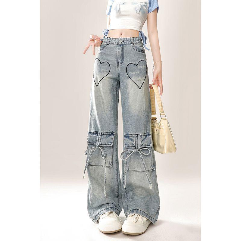 Buy Bay Go Mall Set: High Waist Heart Accent Wide Leg Cargo Jeans + Belt at YesStyle.com! Quality products at remarkable prices. FREE Worldwide Shipping available!