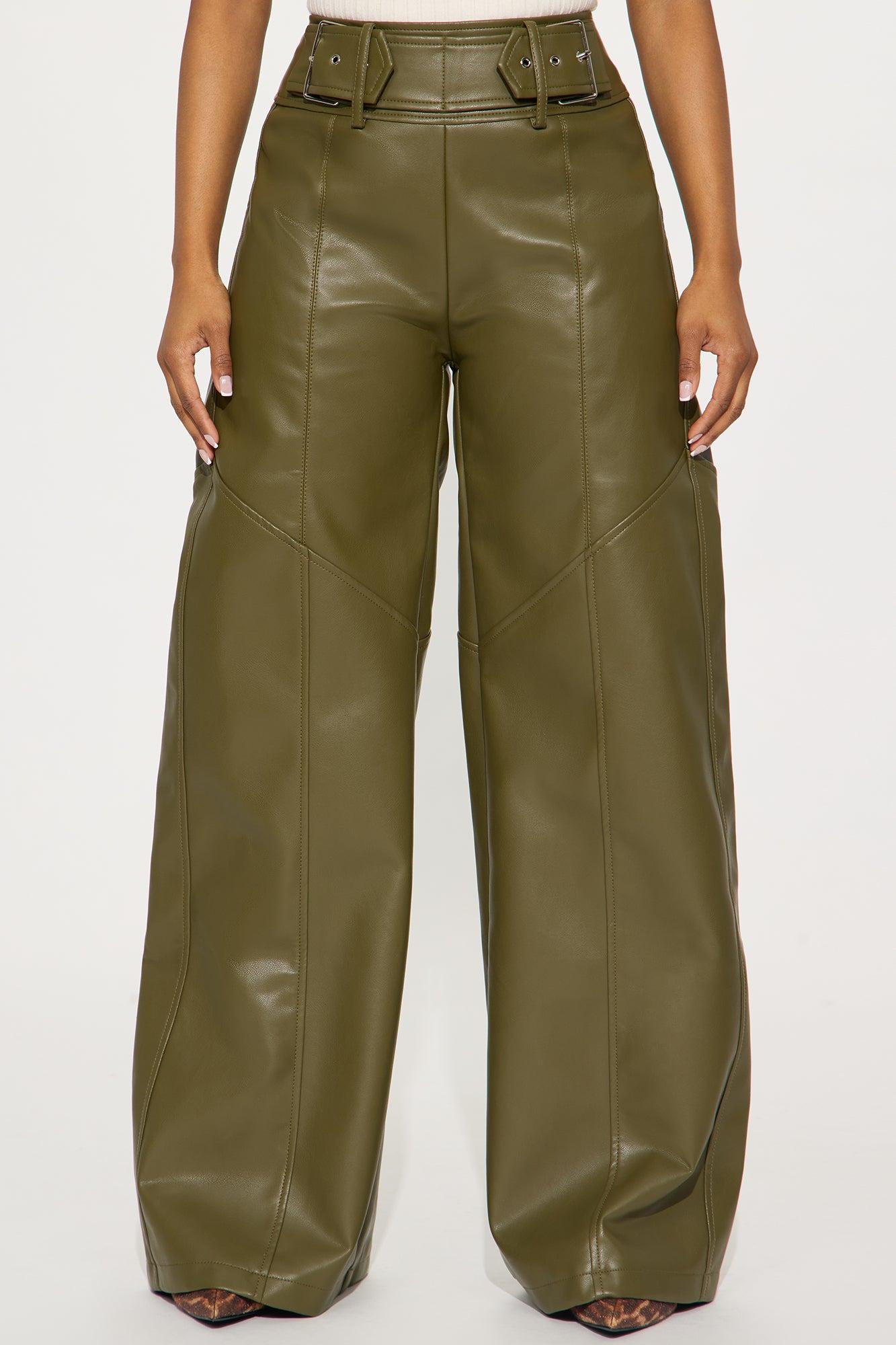 Set In My Ways High Rise Faux Leather Wide Leg Pant 33 - Olive Female