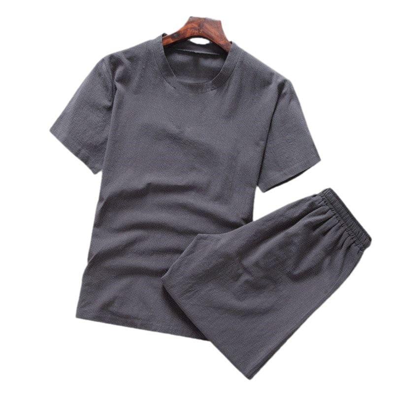 Set: Short-Sleeve Round Neck Plain T-Shirt + Drawstring Waist Shorts
