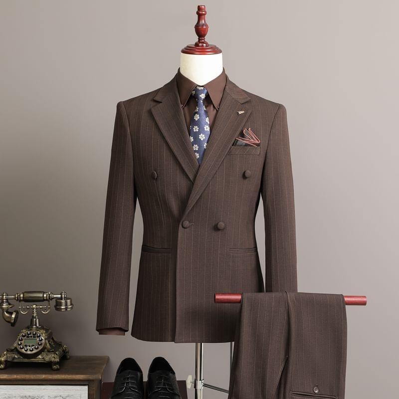 Set: Striped Double Breasted Blazer + Dress Pants + Vest