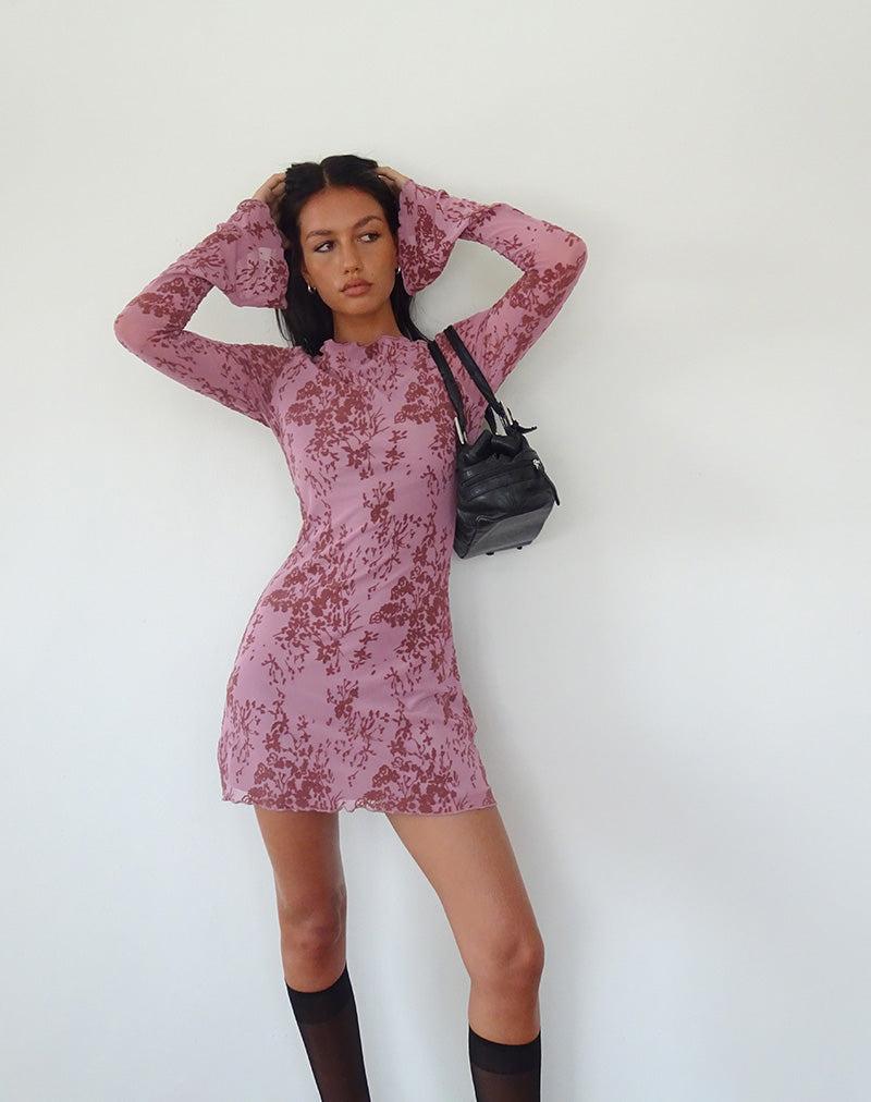 Sevila Long Sleeve Mini Dress in Botanic Mauve Female