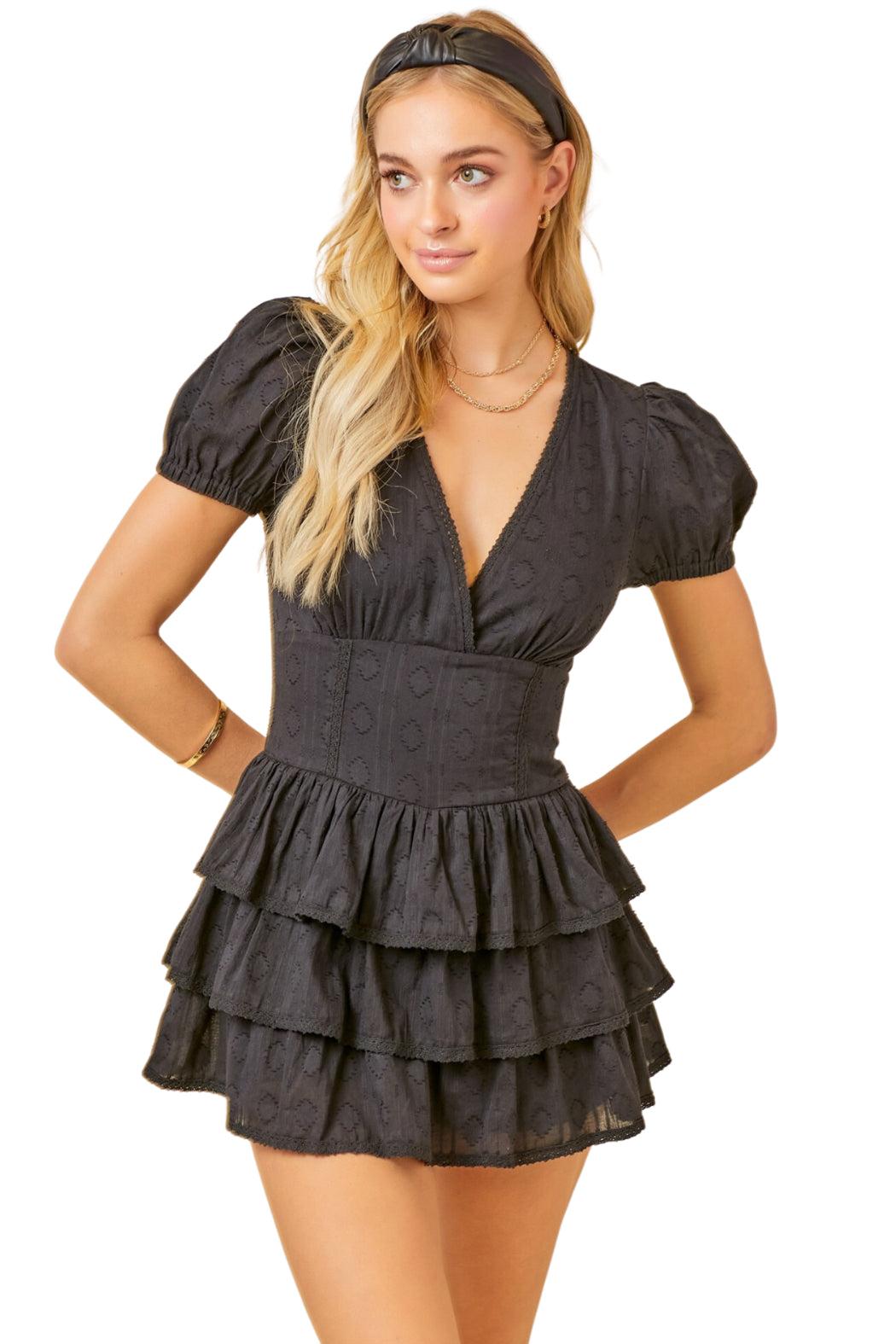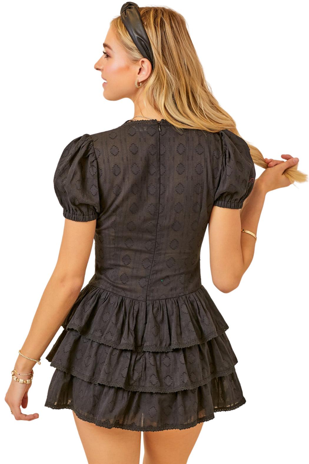 Level up your everyday style with this flattering Sevilla Embroidered Dress. It has puff sleeves with elastic cuffs, a v-neckline, lined with shorts, and a ruffled bottom. Perfect to wear for going out on dates as well as for a night out with friends.