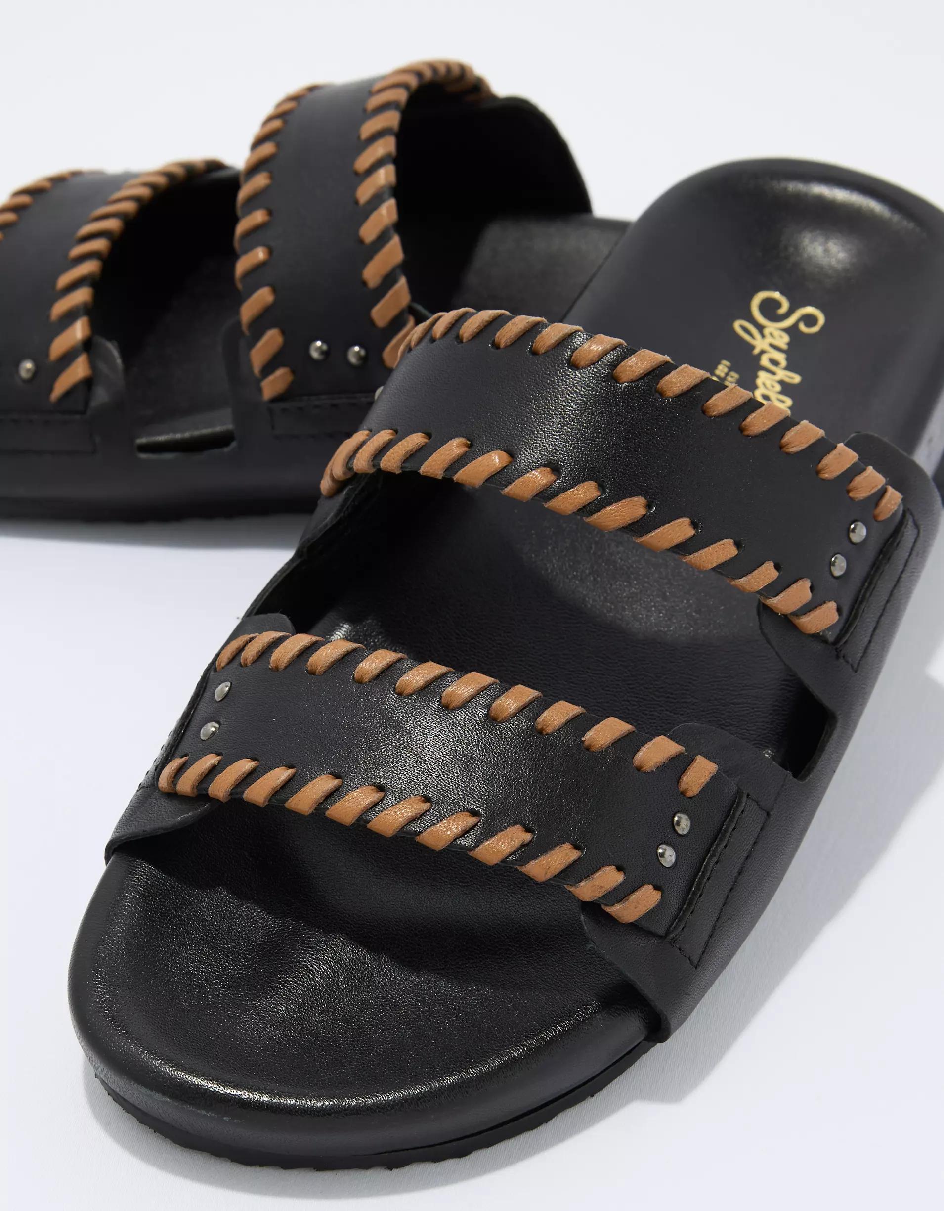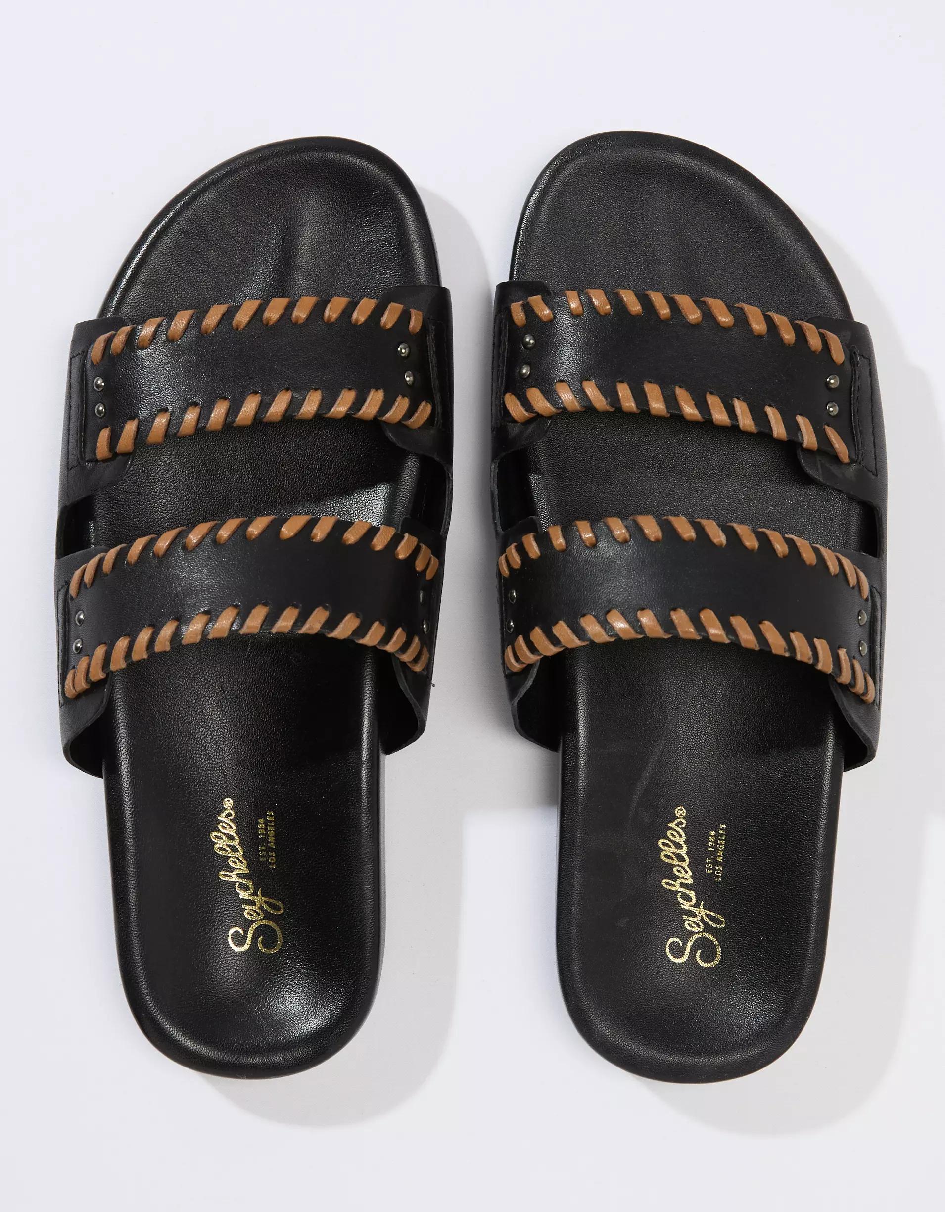 Easy, effortless and elegant – contrasting leather whipstitch lacing adds an artisanal touch to these luxe footbed sandals.