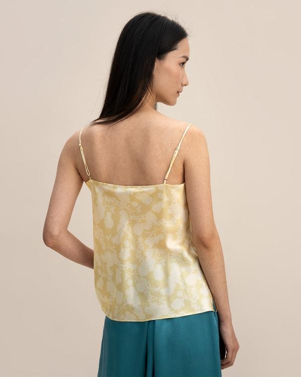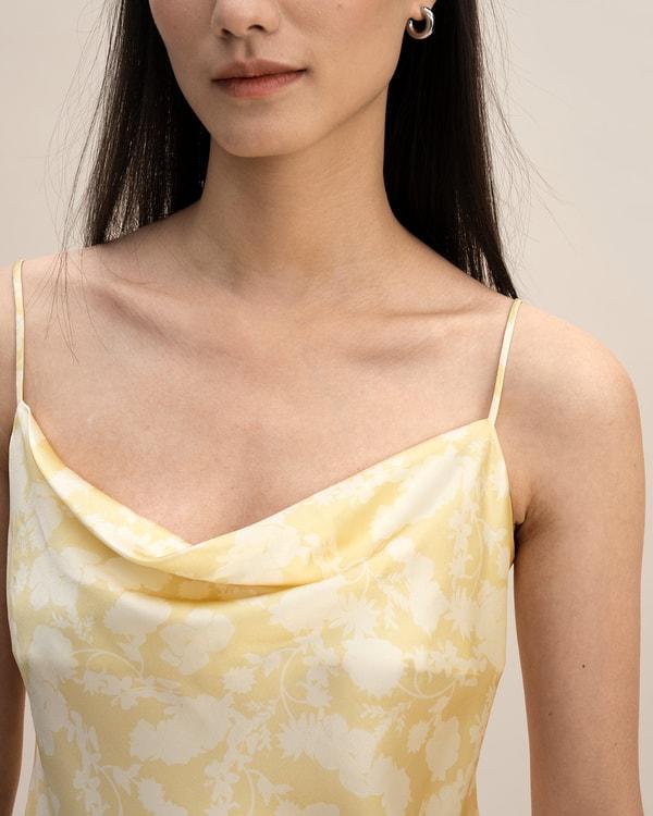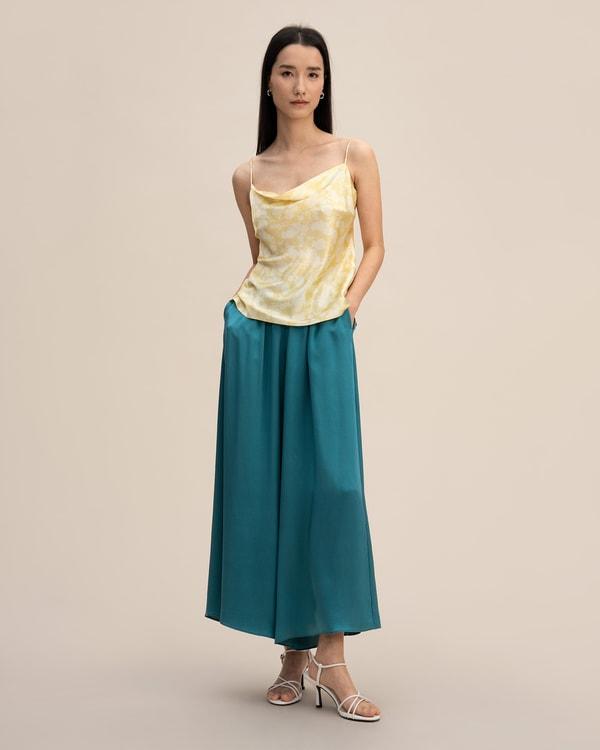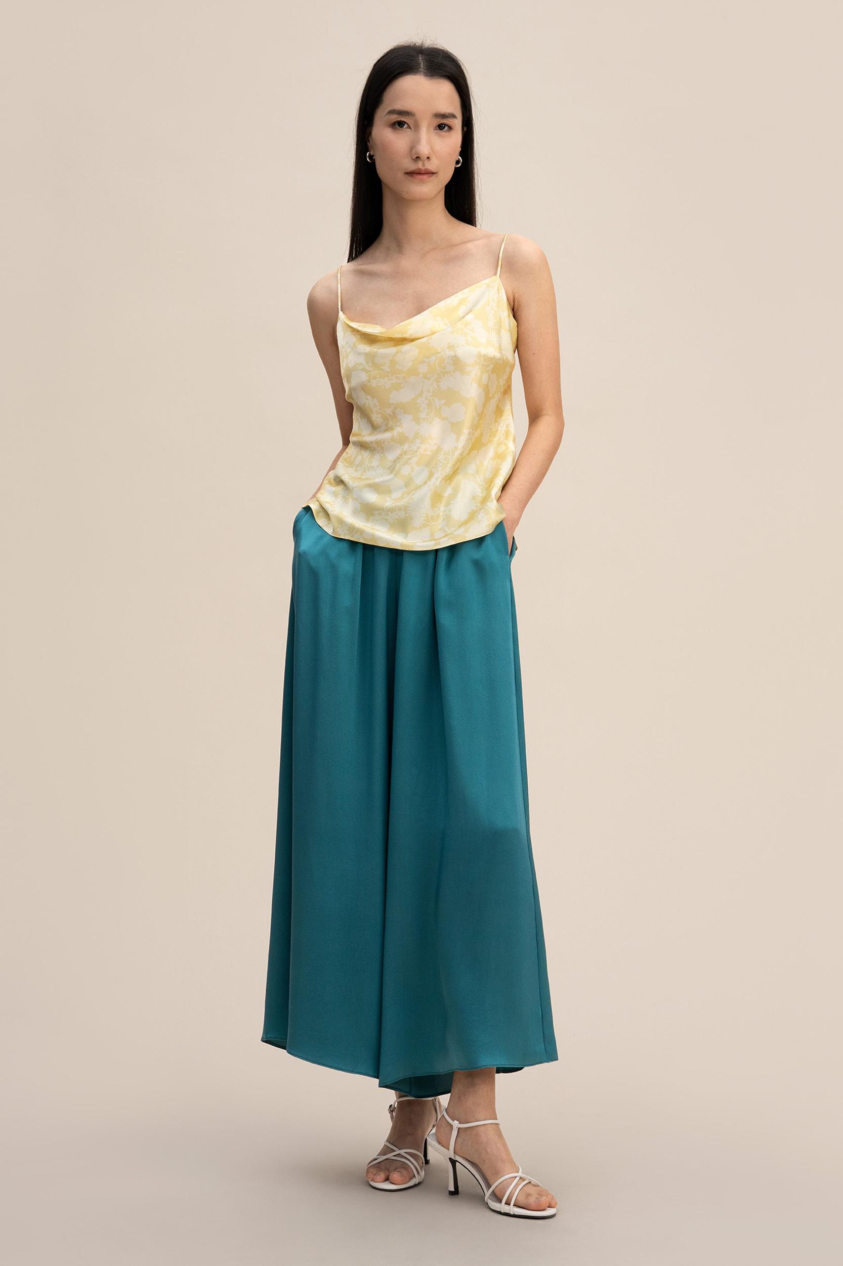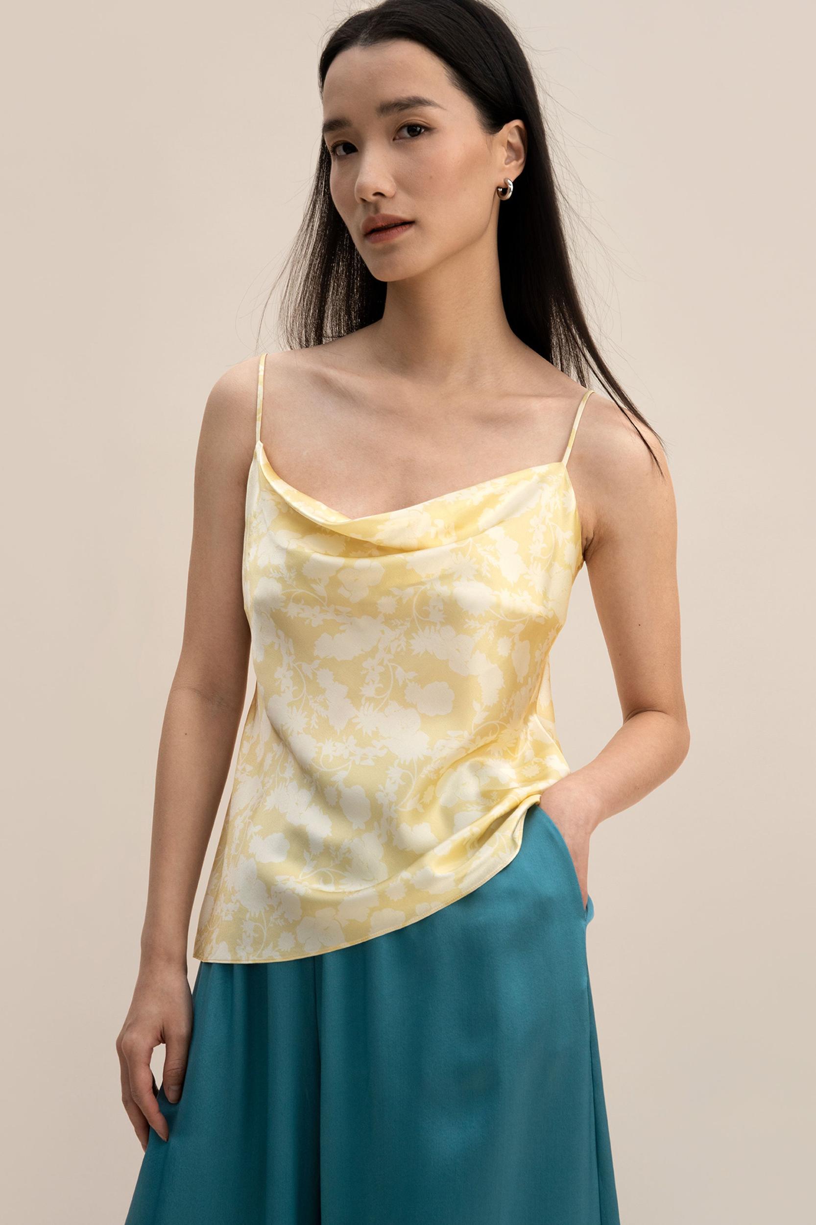 The shadow print spaghetti strap cowl neck camisole offers a relaxed yet presentable look, and is a versatile piece that goes well with either pants or skirts.