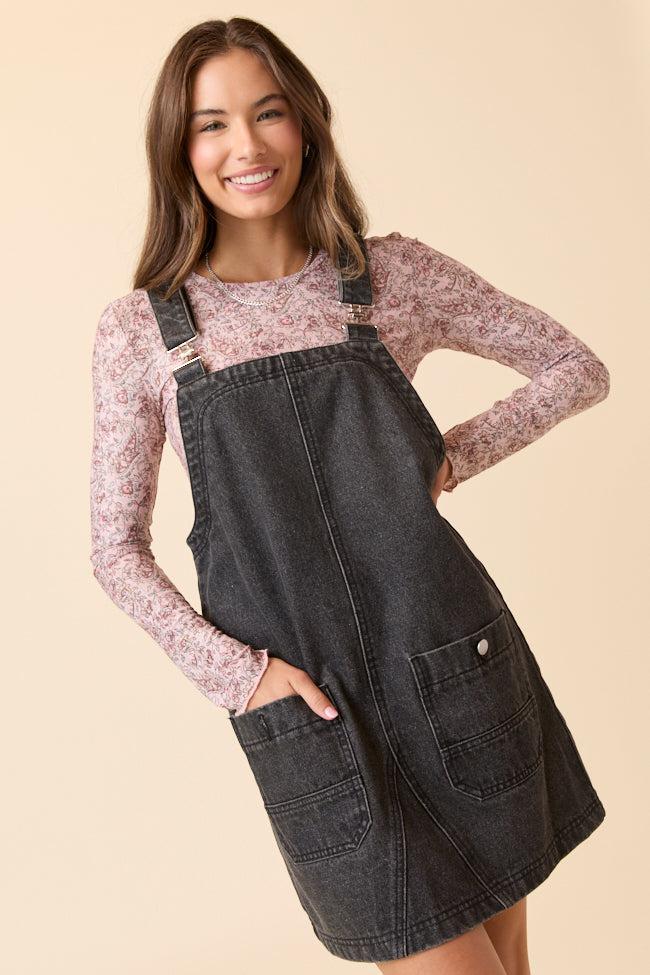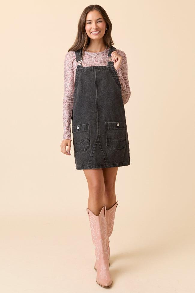 Shailene Black Denim Overall Dress
