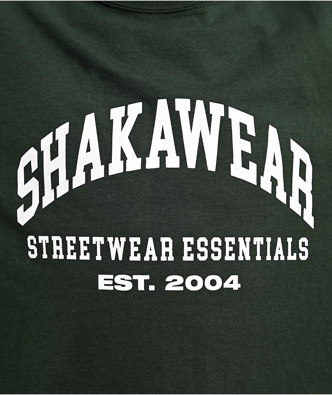 Elevate your street style with the Shaka Wear Collegiate green t-shirt. Known for high-quality tees, this Shaka Wear t-shirt arrives in dark green and employs a heavyweight construction for a premium feel. This athletic tee is finished with "Shakawea