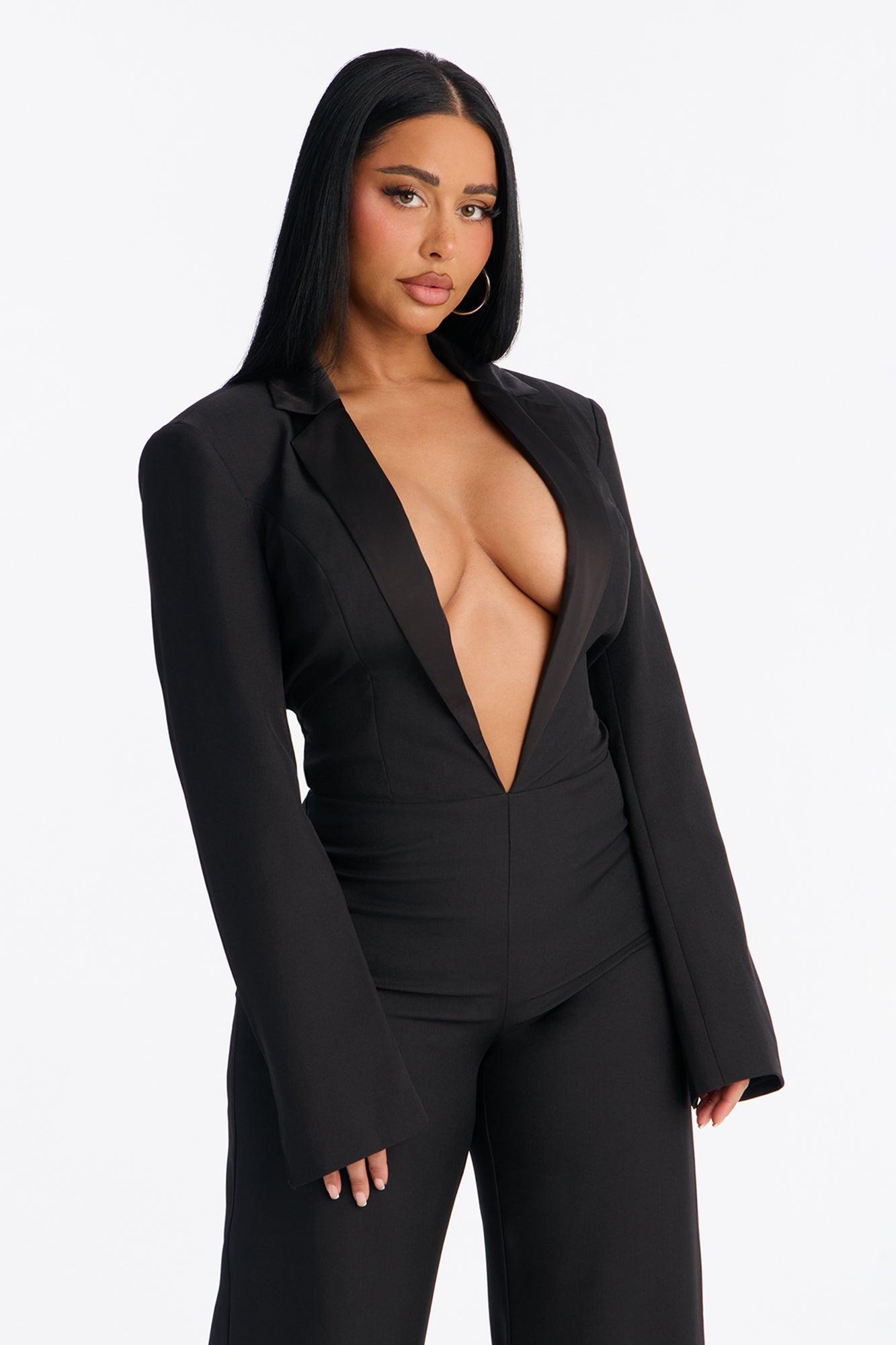 Shana Plunge Neck Jumpsuit - Black Female