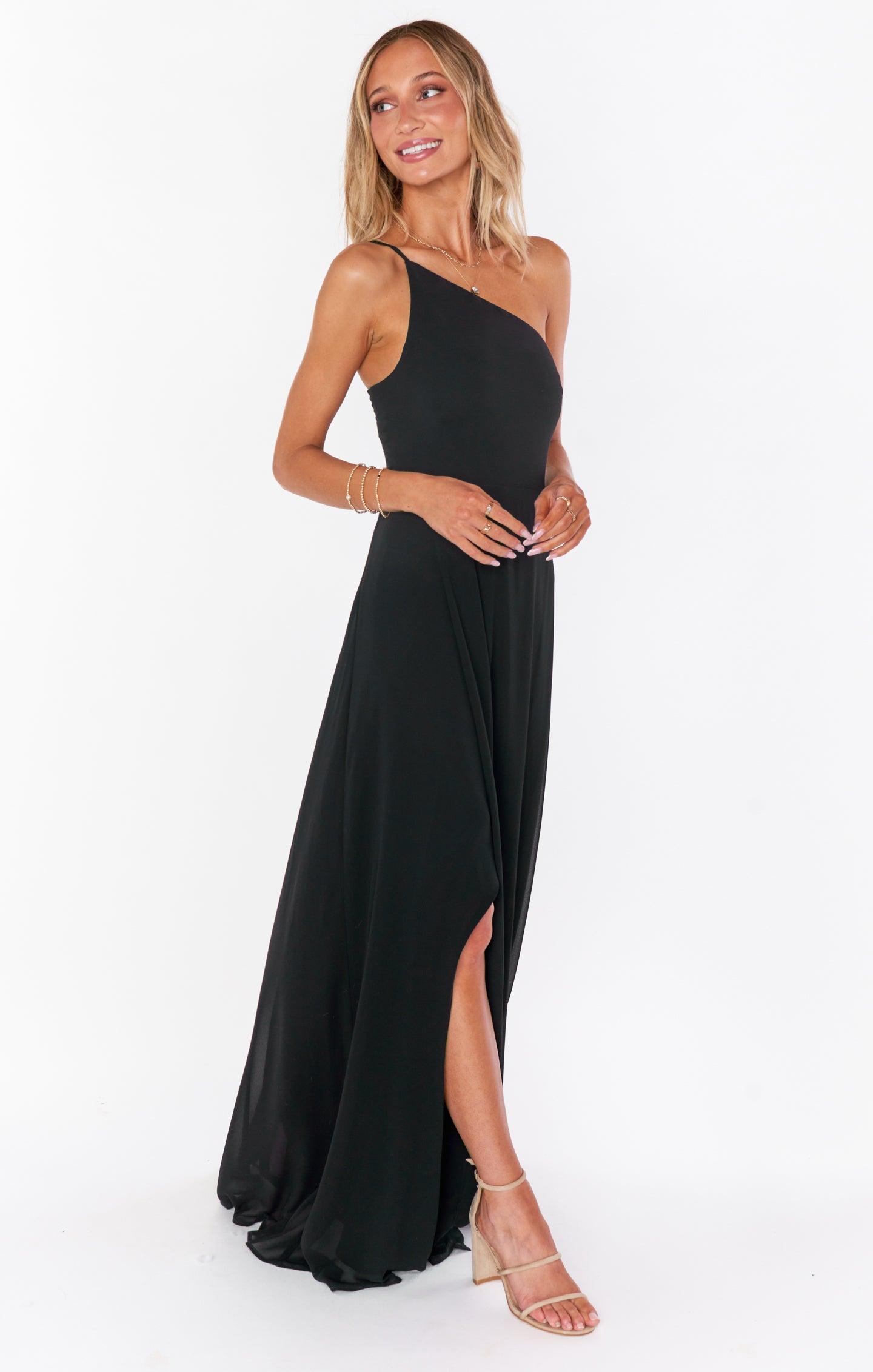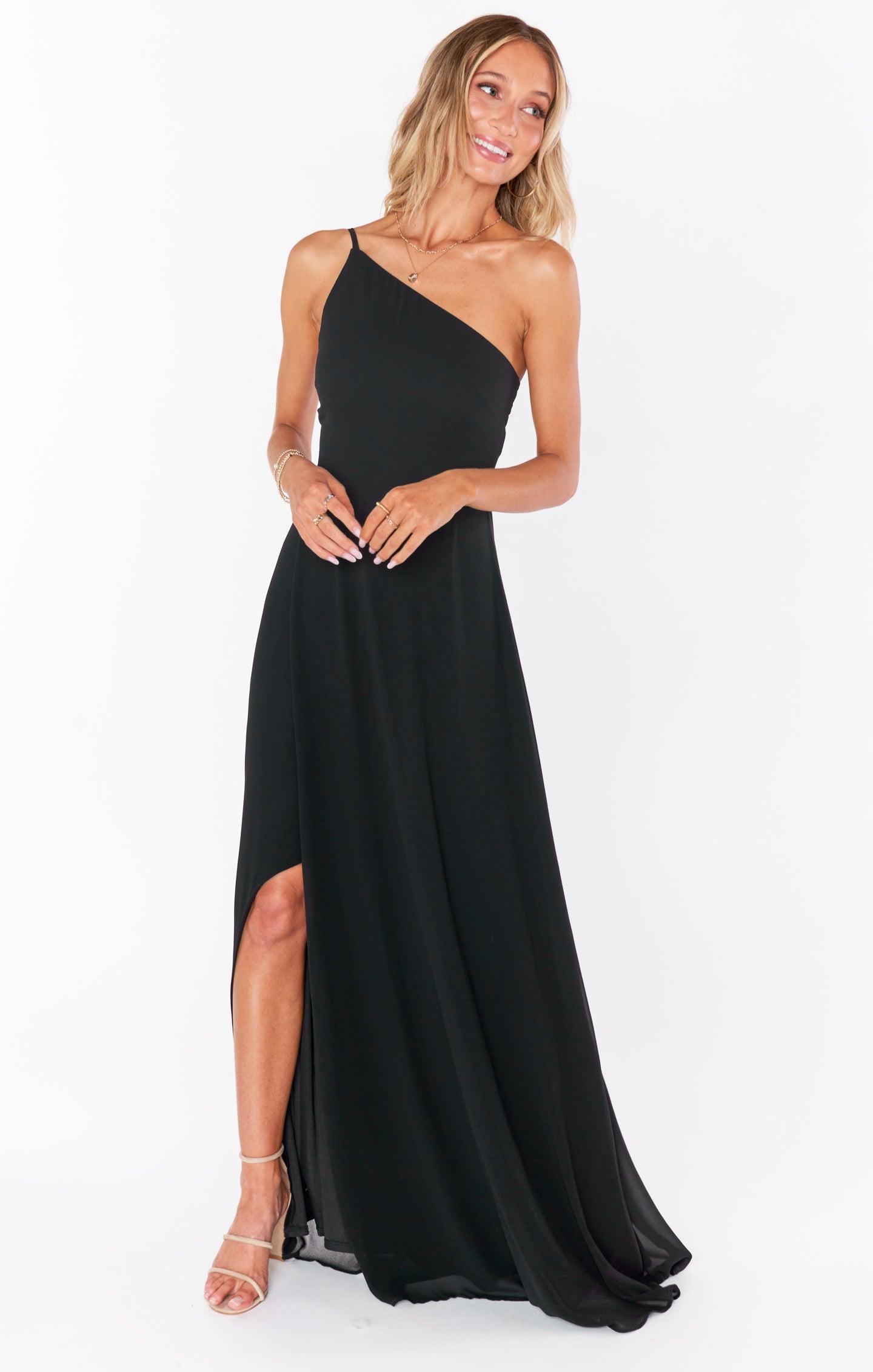 Shannon One Shoulder Dress ~ Black Chiffon
