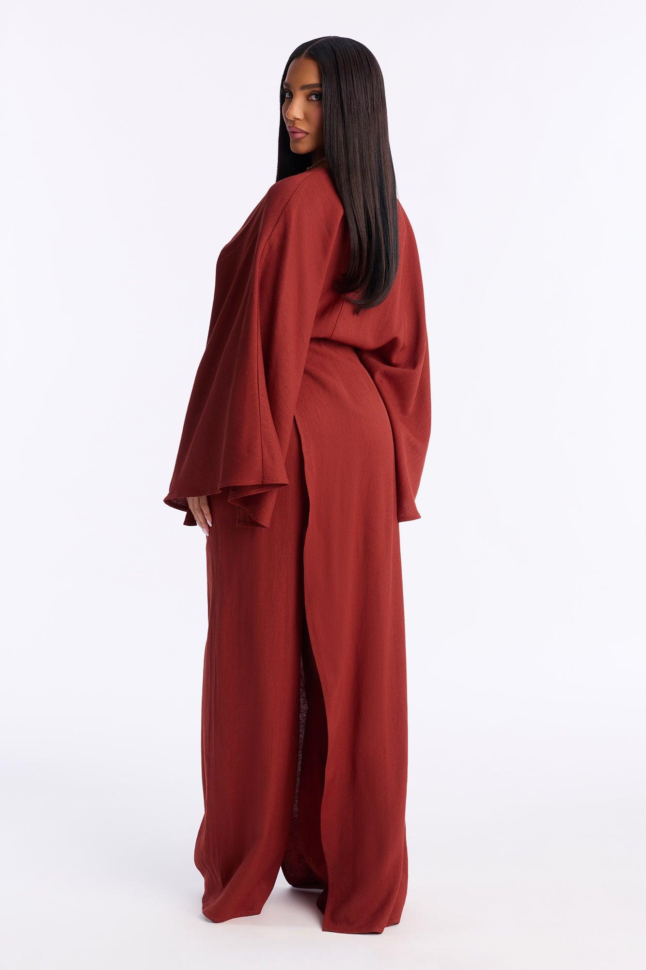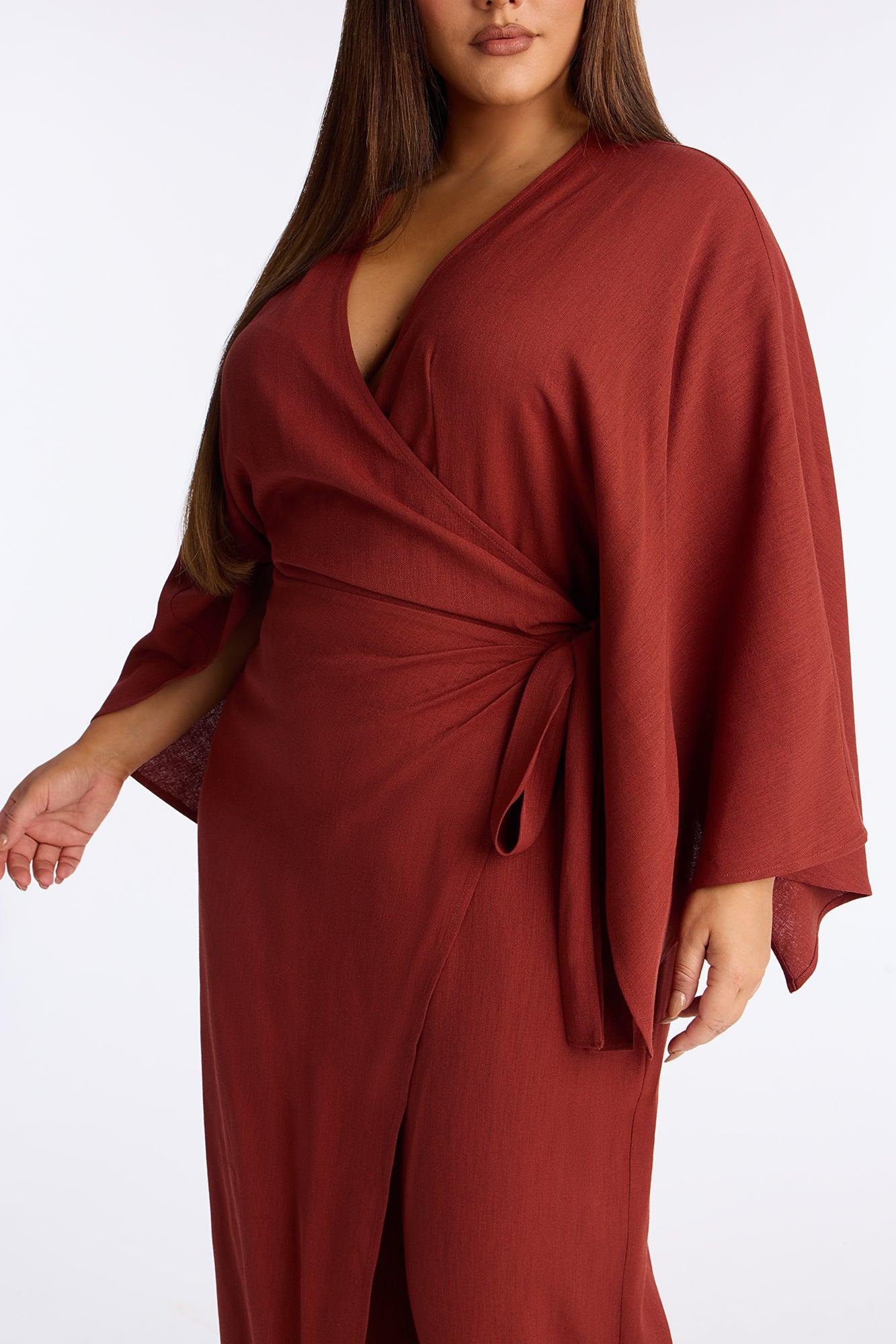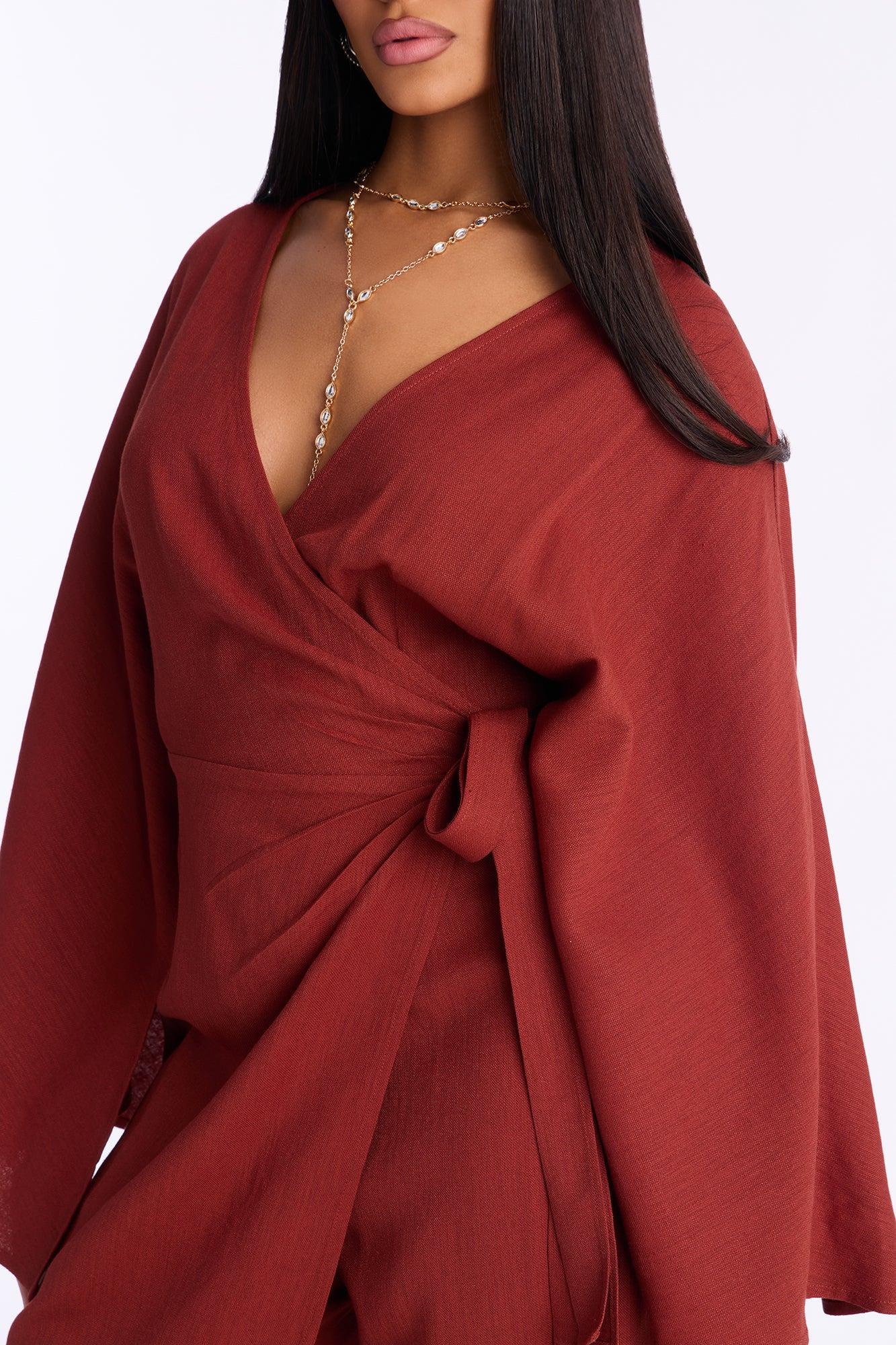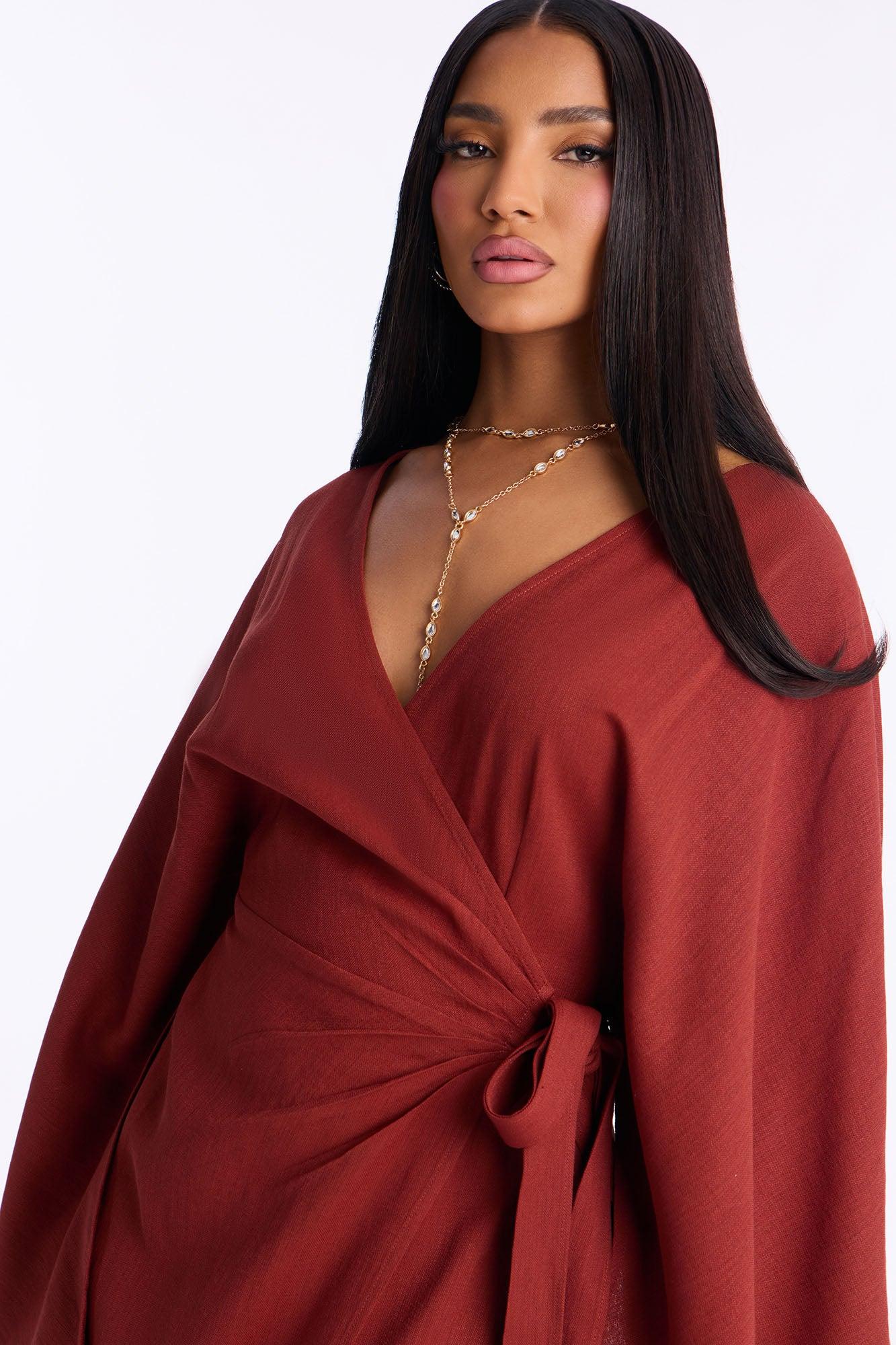 Shantal Long Sleeve Wrap Wide Leg Jumpsuit - Rust Female