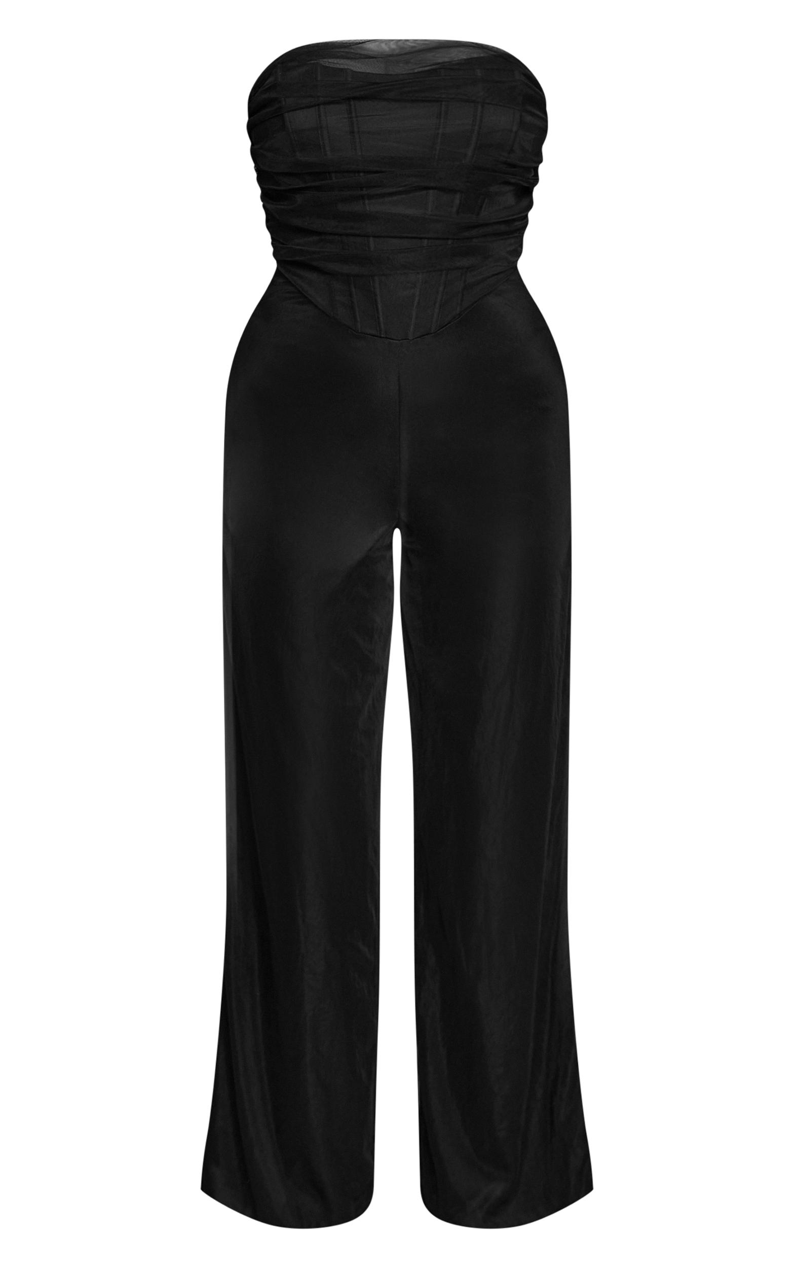 Designed with hourglass figures in mind these curve enhancing tweaks do the most (for both your figure and confidence). PLT Shape looks good on you. The shape black bandeau mesh corset jumpsuit offers a daring yet chic aesthetic, combining a structured corset bodice with sheer mesh panels. Team it with strappy heels and bold earrings for a night-out look that commands attention. This statement jumpsuit gives a confident, body-contouring fit that elevates your eveningwear game.Length approx 145cm/57inch (Based on sample size US 4)Model wears size UK 8/ EU 36/ AUS 8/ US 4Model Height - 5ft 9inchp]:!mb-4inch>Brand: PrettyLittleThingCategory: DressesProduct type: Wide Leg JumpsuitColor: BlackMaterial: MeshOccasion: Occasion