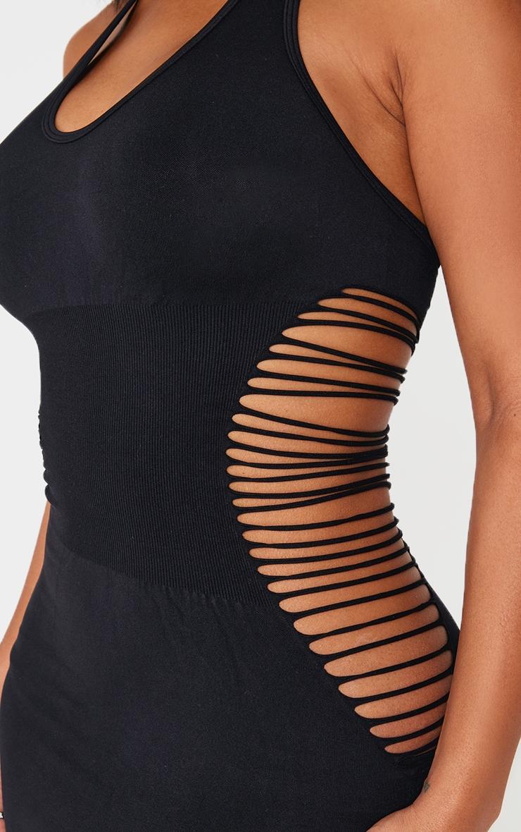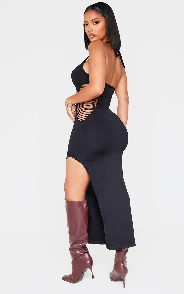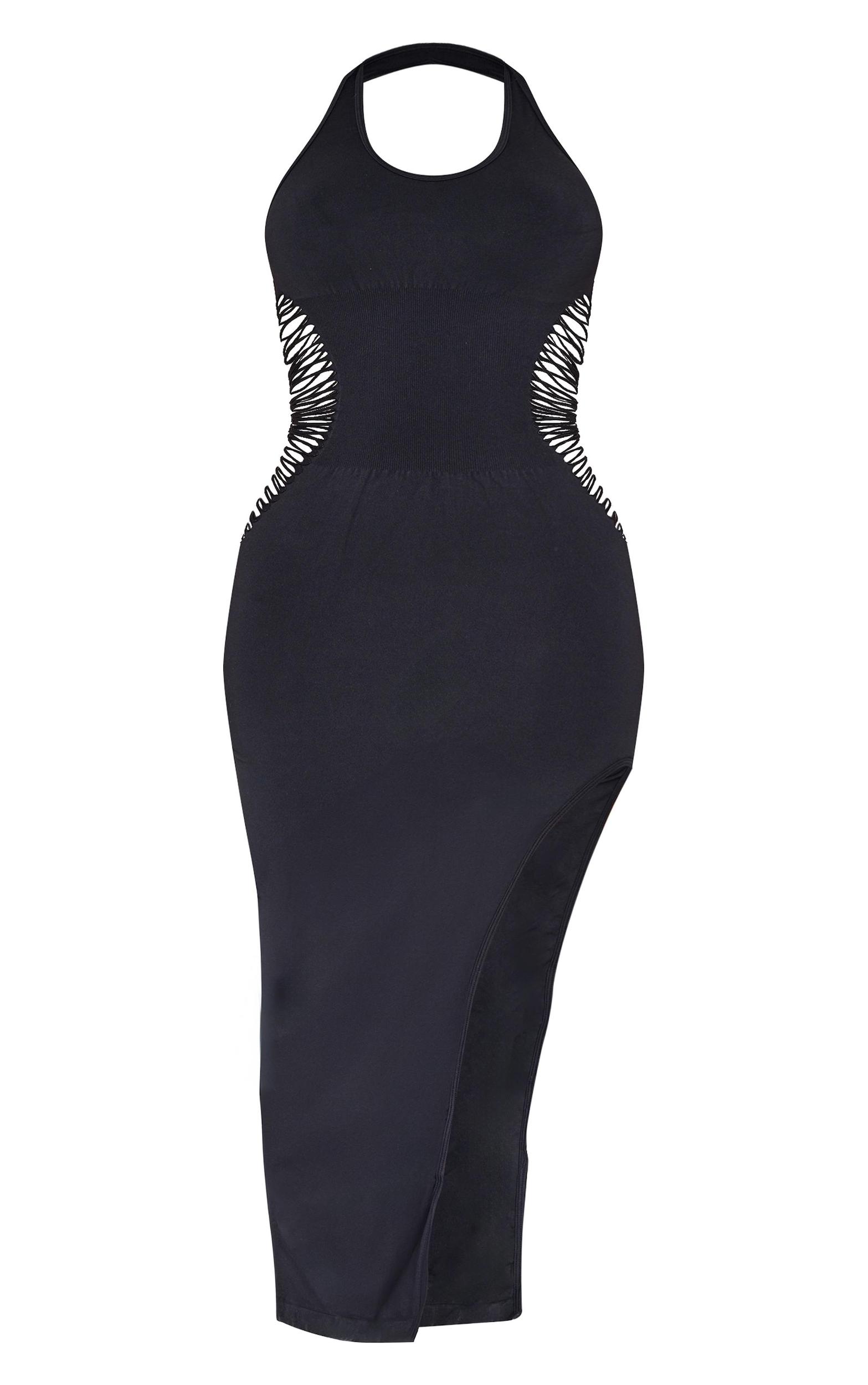 Blessed with a body like an hourglass? Good for you girl. PLT Shape is designed with you in mind, with a few figure and curve enhancing tweaks to give you the perfect fit. You are guaranteed to turn heads in this shape black seamless ladder cut out halterneck midaxi dress. Brought to you in a black seamless material with a halterneck design, ladder cut out detailing and a midaxi fit, how can you say no? Style this midxi dress with heels and statement accessories for a weekend-worthy look that won't be forgotten. Length approx 135cm/53inch (Based on a sample size S) Model wears size SModel Height - 5ft 5inchp]:!mb-0inch>Category: DressesProduct type: Bodycon DressColor: BlackMaterial: Slinky JerseyNeckline: HalterneckSleeves: SleevelessOccasion: Evening