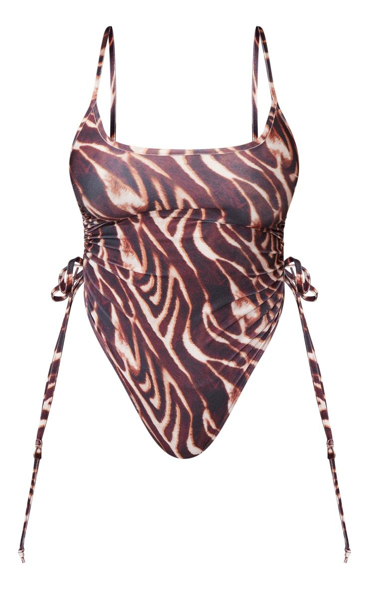 Designed with hourglass figures in mind these curve enhancing tweaks do the most (for both your figure and confidence). PLT Shape looks good on you. Zebra print, re-imagined. This season, consider a considered approach to swimwear with this brown zebra print swimsuit. Cut in a high-rise silhouette to elongate the legs, the ruched side detailing allows for a customisable fit. Style it with oversized sunglasses and sculptural gold earrings for a considered poolside look.Length approx 73.5cm/29inch (Based on sample size US 4)Model wears size UK 8/ EU 36/ AUS 8/ US 4Model Height - 5ft 7inchp]:!mb-4inch>Brand: PrettyLittleThingCategory: SwimwearProduct type: SwimsuitColor: BrownMaterial: SwimDesign: PrintOccasion: Day