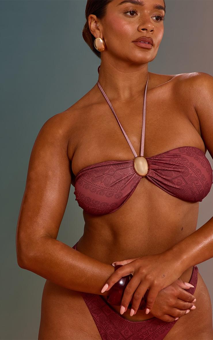 Designed with hourglass figures in mind these curve enhancing tweaks do the most (for both your figure and confidence). PLT Shape looks good on you.Add print to your swimwear with the shape chocolate paisley print gold trim bikini bottom. Made from a chocolate paisley print stretch swim material, these bottoms are detailed with gold trim for a luxe finish. Pair with the matching bikini top for a cohesive look.Length approx 29cm/11.5inch (Based on sample size US 4)Model wears size UK 8/ EU 36/ AUS 8/ US 4Model Height - 5ft 7inchp]:!mb-4inch>Brand: PrettyLittleThingCategory: SwimwearProduct type: High Leg Bikini BottomColor: BurgundyOccasion: Day