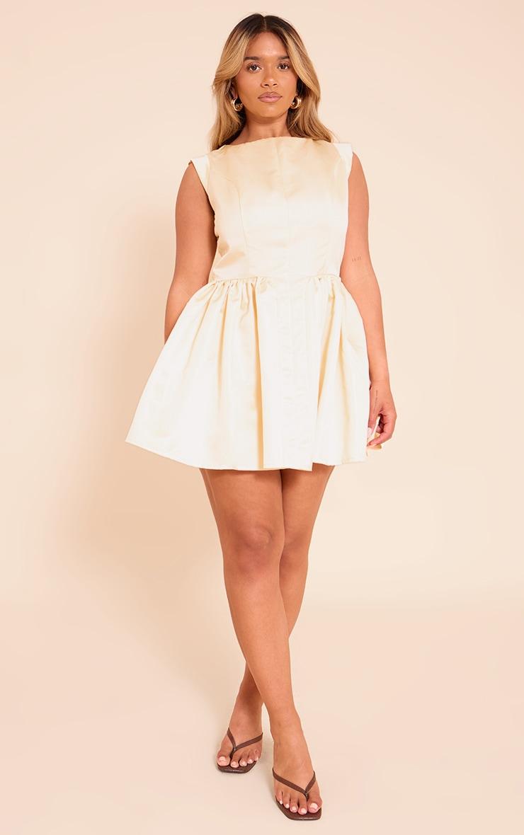 Designed with hourglass figures in mind these curve enhancing tweaks do the most (for both your figure and confidence). PLT Shape looks good on you. Brighten up your day with the shape butter yellow boat neck cap sleeve skater mini dress. Made from a soft stretch fabric, it features a fitted bodice and flared mini skirt for that perfect silhouette. Pair with nude sandals and soft curls for a sweet brunch look.Length approx 81.5cm/32inch (Based on sample size US 4)Model wears size UK 8/ EU 36/ AUS 8/ US 4Model Height - 5ft 7inchp]:!mb-4inch>Brand: PrettyLittleThingCategory: DressesProduct type: Shift DressColor: Butter YellowMaterial: Tailored WovenDesign: PlainNeckline: Boat NeckSleeves: SleevelessOccasion: Occasion