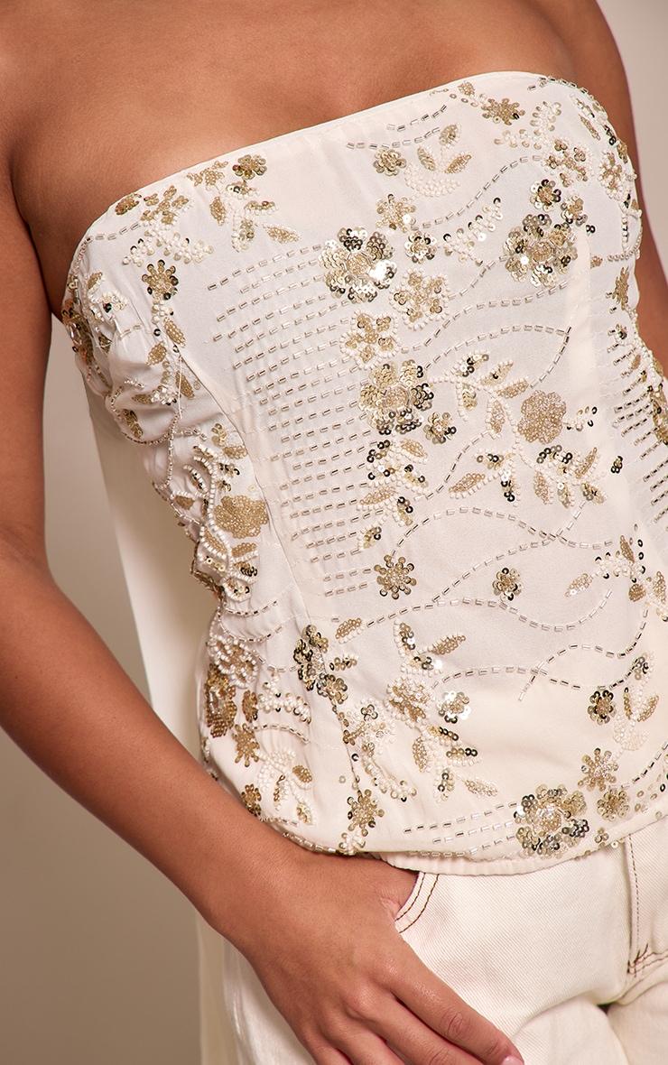 Designed with hourglass figures in mind these curve enhancing tweaks do the most (for both your figure and confidence). PLT Shape looks good on you.Make an entrance that truly sparkles. The shape cream floral sequin bandeau scarf detail top is designed for impactful occasion styling. Its strapless bandeau cut offers a sleek canvas, intricately adorned with delicate floral sequins that catch the light with every movement. The integrated scarf detail drapes effortlessly, adding a refined, distinctive dimension to your silhouette. Pair this show-stopping top with tailored cream pants for a cohesive look, then elevate with gold strappy heels and subtle gold earrings to ensure an assured finish. It's a piece for those who understand how to make a statement with confidence and effortless poise.Length approx 48.5cm/19inch (Based on sample size US 4)Model wears size UK 8/ EU 36/ AUS 8/ US 4Model Height - 5ft 7inchp]:!mb-4inch>Brand: PrettyLittleThingCategory: TopsProduct type: CorsetColor: CreamMaterial: ChiffonOccasion: Occasion