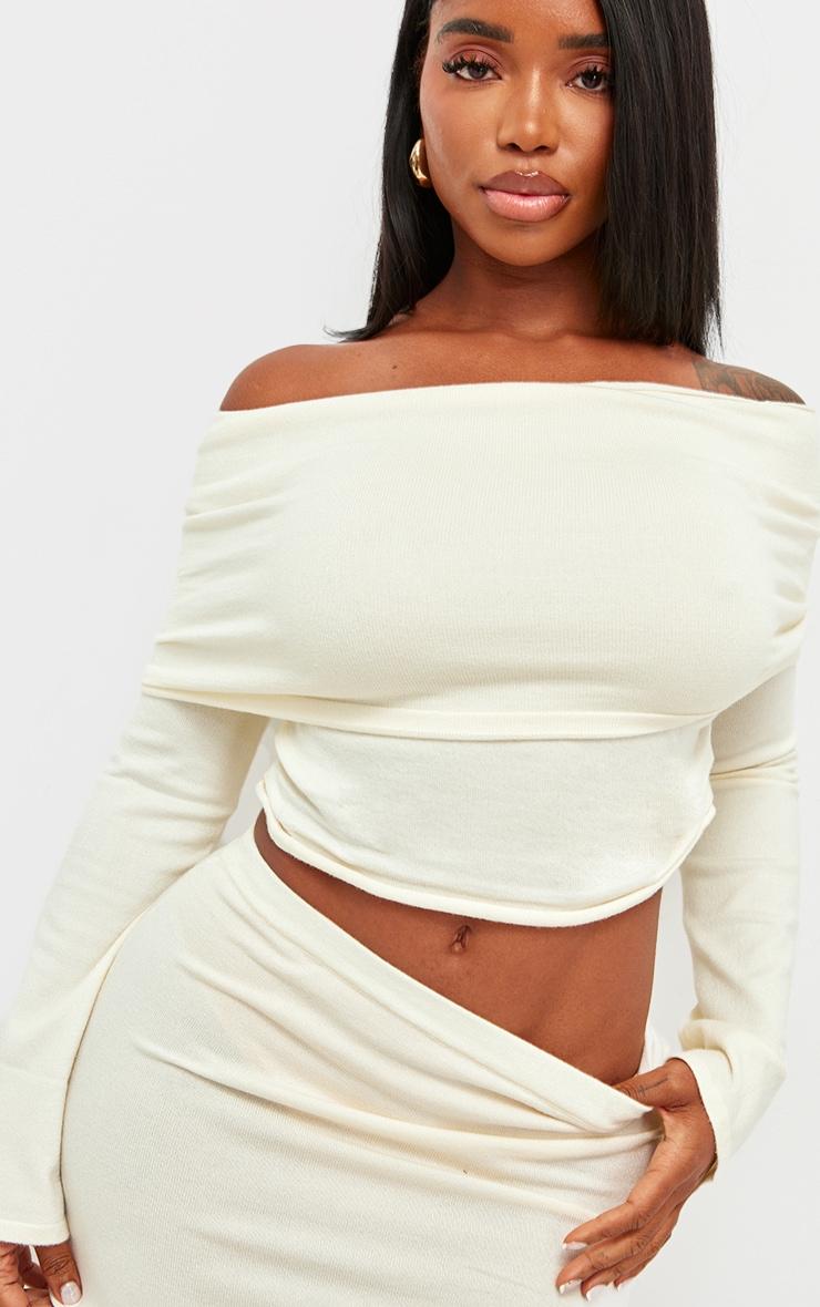 Blessed with a body like an hourglass? Good for you girl. PLT Shape is designed with you in mind, with a few figure and curve enhancing tweaks to give you the perfect fit. Turn heads for all the right reasons in this shape cream soft knit extreme foldover long sleeve ruched side top. Brought to you in a cream hue soft knit material with an extreme foldover detail and ruched sides, this long sleeved top is a must-have. How can you say no? Style with the matching skirt, your fave heels and gold accessories for a combo we're crushing on this season. Length approx 30.5cm/12inch (Based on a sample size UK 8) Model wears size UK 8/ EU 36/ AUS 8/ US 4Model Height - 5ft 7inchp]:!mb-0inch>Category: KnitwearProduct type: TopColor: CreamMaterial: KnitNeckline: BardotSleeves: LongOccasion: Evening