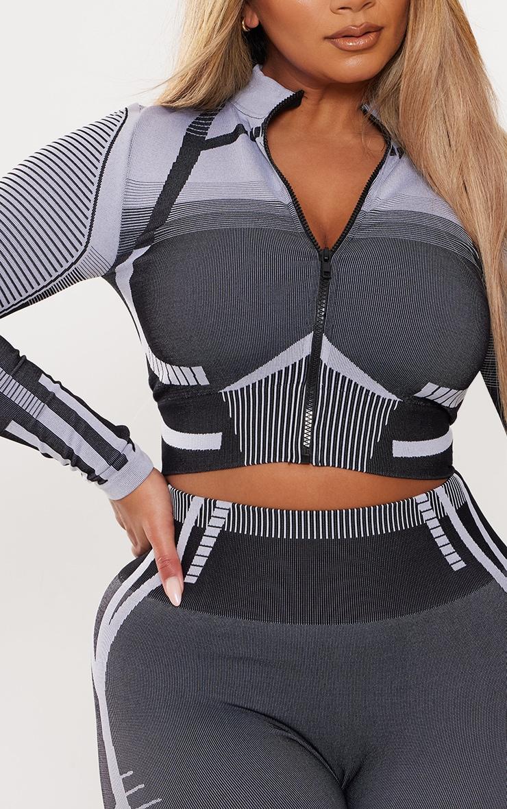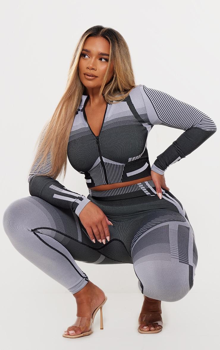 Blessed with a body like an hourglass? Good for you girl. PLT Shape is designed with you in mind, with a few figure and curve enhancing tweaks to give you the perfect fit. Switch up your weekend style game with this shape grey contrast high neck long sleeve jacket. Brought to you in a grey hue material with a contrasting design, a zip fastening and long sleeves, what more could you want? Team this shape jacket with the matching leggings, heels and gold accessories for a look that is sure to have eyes on you all night long. Length approx 38cm/15inch (Based on a sample size S) Model wears size SModel Height - 5ft 7inchp]:!mb-0inch>Category: ActivewearProduct type: Legging - Sports Bra Active SetColor: GreyMaterial: SeamlessDesign: PrintSleeves: SleevelessOccasion: Day