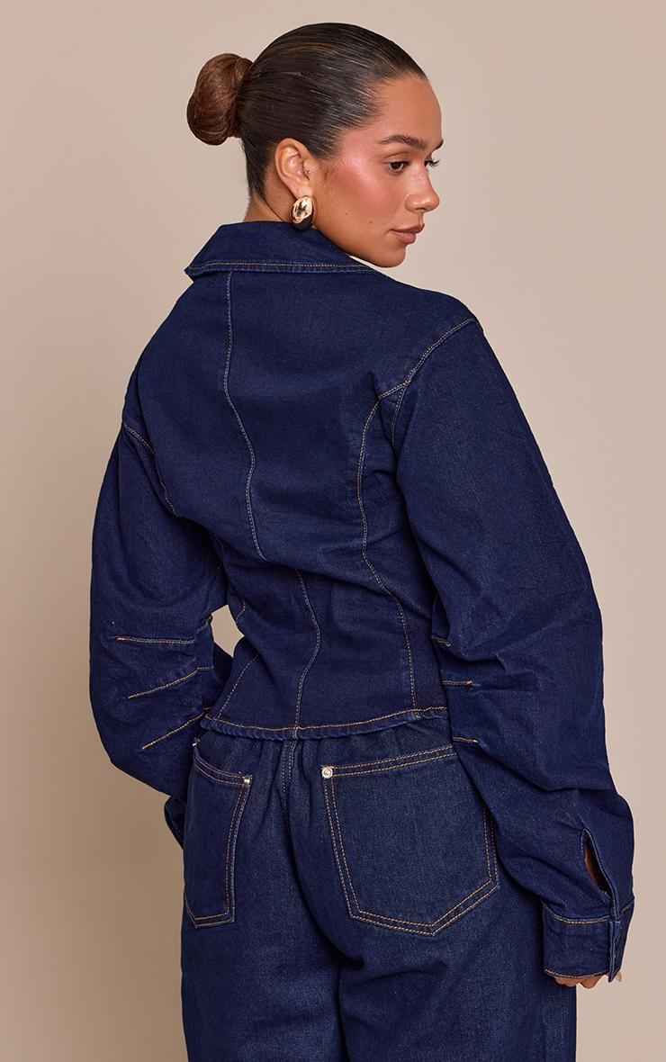 Designed with hourglass figures in mind these curve enhancing tweaks do the most (for both your figure and confidence). PLT Shape looks good on you.Command attention in the chic shape indigo cinched plunge neck denim jacket. Its indigo wash features a sharp collared plunge neckline and a precisely cinched waist. Ideal for those effortlessly styled daytime plans. Style it with coordinating dark wash pants, heeled sandals, and a subtle gold ring for a commanding finish.Length approx 48.5cm/19inch (Based on sample size US 4)Model wears size UK 8/ EU 36/ AUS 8/ US 4Model Height - 5ft 7inchp]:!mb-4inch>Brand: PrettyLittleThingCategory: DenimProduct type: Denim JacketColor: IndigoMaterial: Stretch DenimDesign: PlainSleeves: LongOccasion: Day