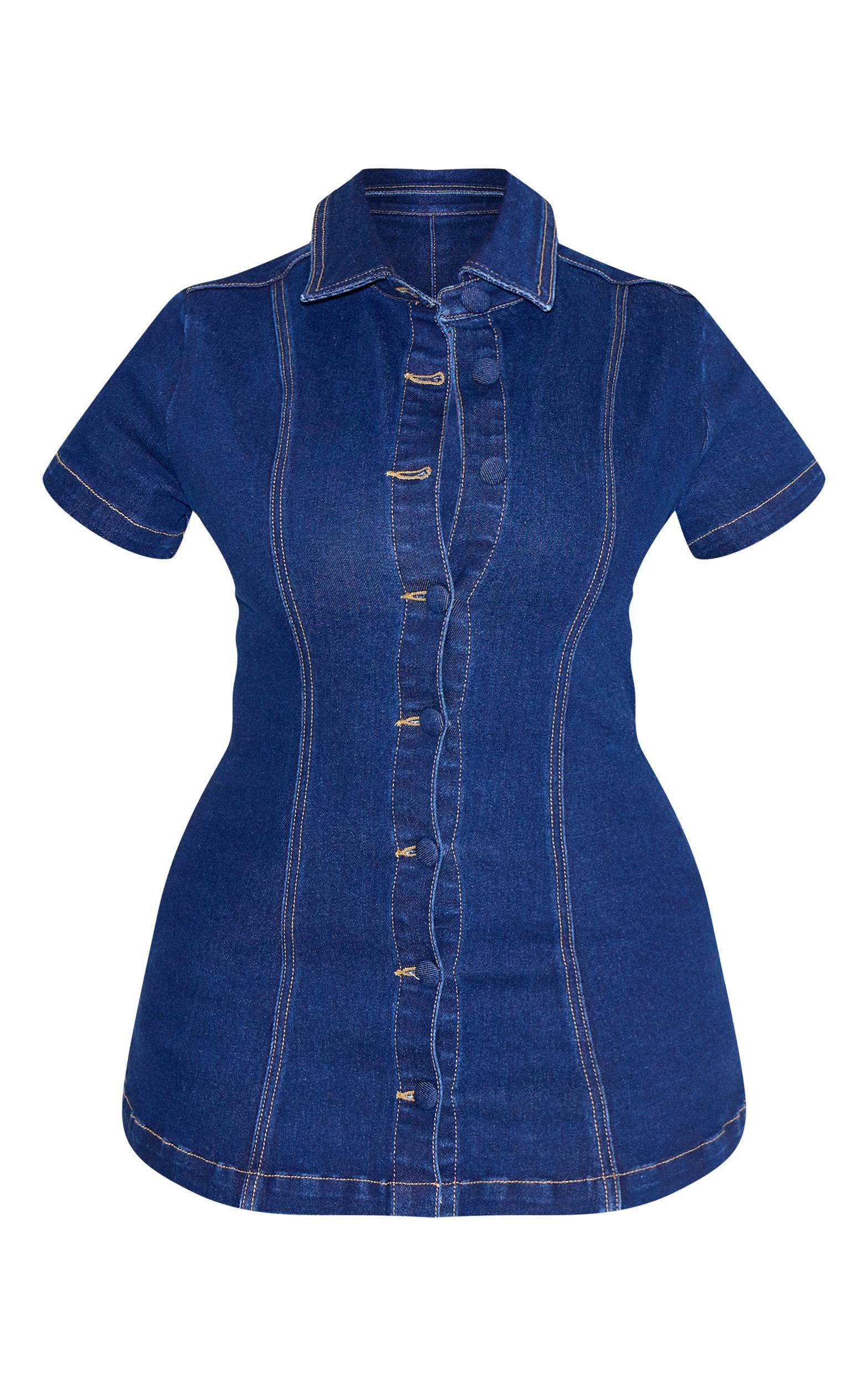 Designed with hourglass figures in mind these curve enhancing tweaks do the most (for both your figure and confidence). PLT Shape looks good on you. Elevate your denim collection with the shape indigo stretch denim longline button front short sleeve shirt. Designed in an indigo stretch denim fabric, this shirt features a longline silhouette, structured short sleeves, and a button front for a flattering fit. Style with high waist denim skirt and kitten heels for a sleek double-denim look.Length approx 48.5cm/19inch (Based on sample size US 4)Model wears size UK 8/ EU 36/ AUS 8/ US 4Model Height - 5ft 7inchp]:!mb-4inch>Brand: PrettyLittleThingCategory: DenimProduct type: Denim ShirtColor: IndigoOccasion: Day