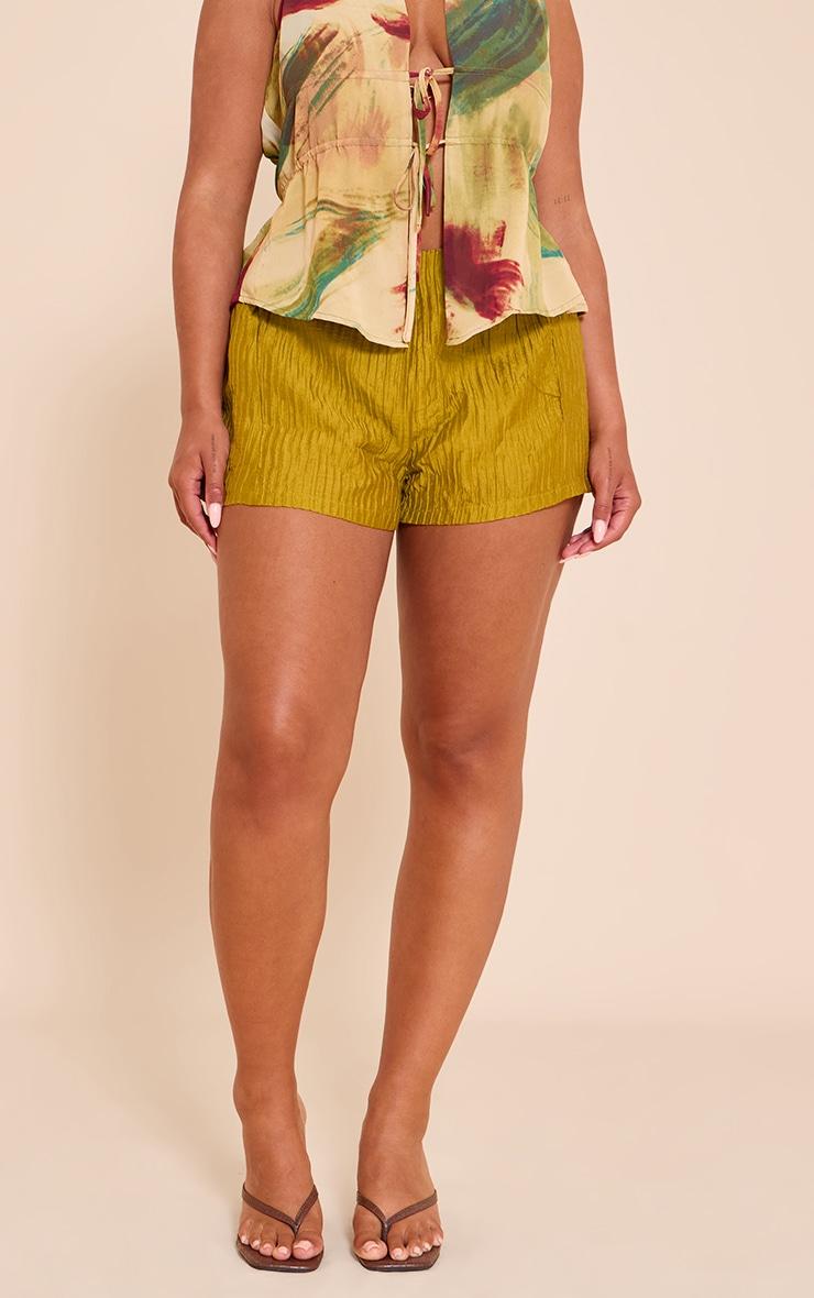 Designed with hourglass figures in mind these curve enhancing tweaks do the most (for both your figure and confidence). PLT Shape looks good on you. Double the detail, double the impact, this shape olive tailored mini skirt with a double waistband brings a unique take on smart dressing. Style with a casual tee and sandals for a sleek vibe.Length approx 33cm/13inch (Based on sample size US 4)Model wears size UK 8/ EU 36/ AUS 8/ US 4Model Height - 5ft 7inchp]:!mb-4inch>Brand: PrettyLittleThingCategory: BottomsProduct type: FloatyColor: OliveMaterial: PlisseDesign: PlainOccasion: Day