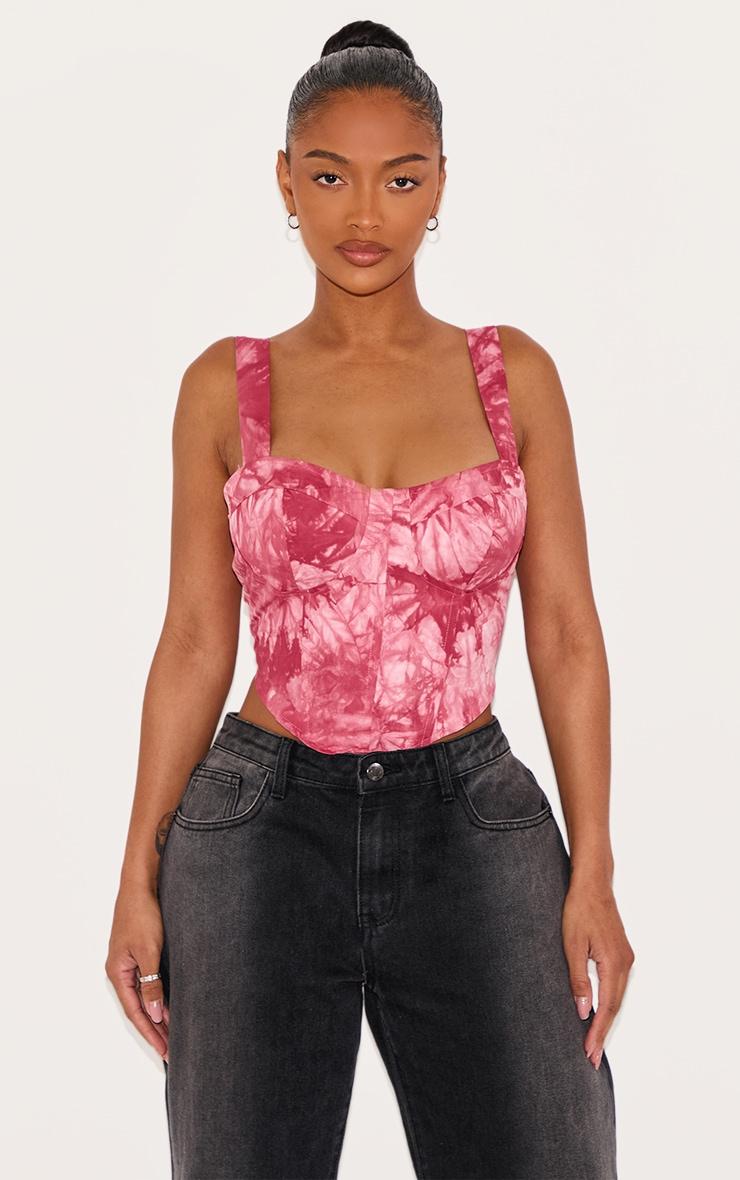 Blessed with a body like an hourglass Good for you girl. PLT Shape is designed with you in mind, with a few figure and curve enhancing tweaks to give you the perfect fit. Add a bold print to your outfit with this crop top. Featuring a pink tie-dye woven fabric with a corset design, we love this teamed with vinyl pants and heels for an all-pink look we're loving. Length approx 38cm/15 (Based on a sample size UK 8) Model wears size UK 8/ EU 36/ AUS 8/ US 4 Model Height - 5ft 5