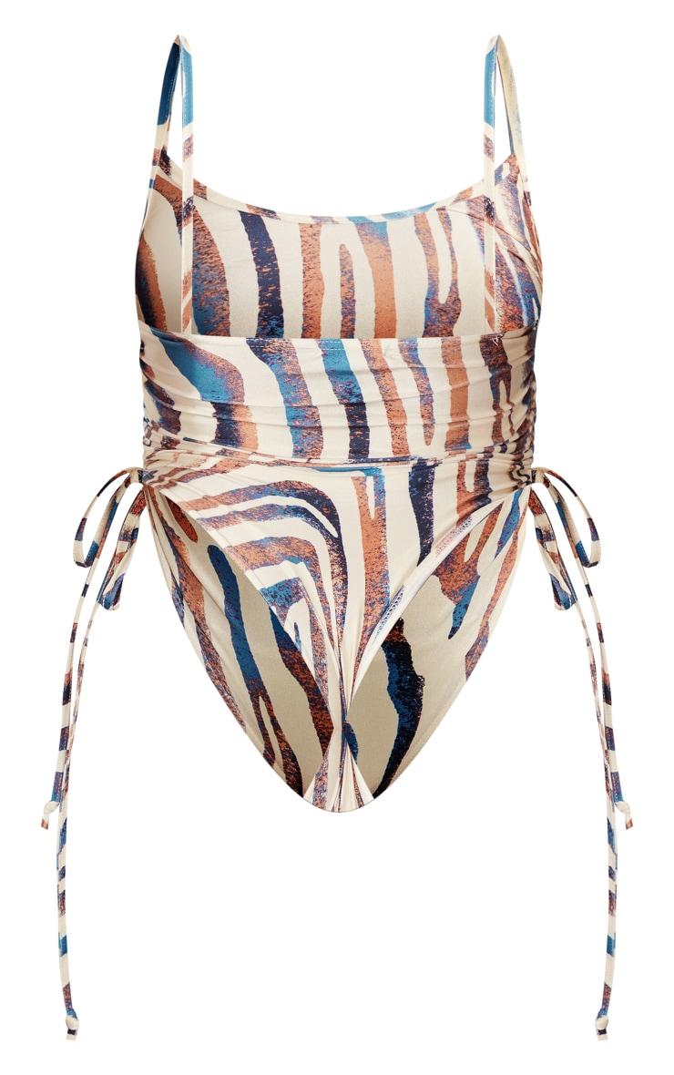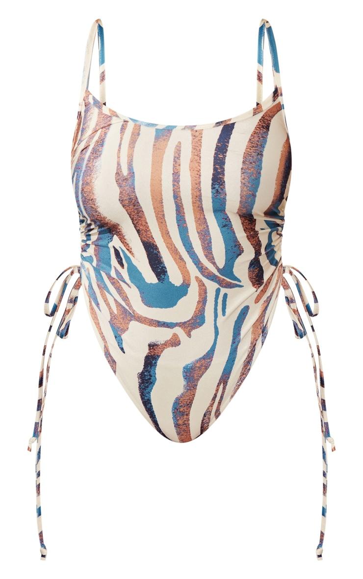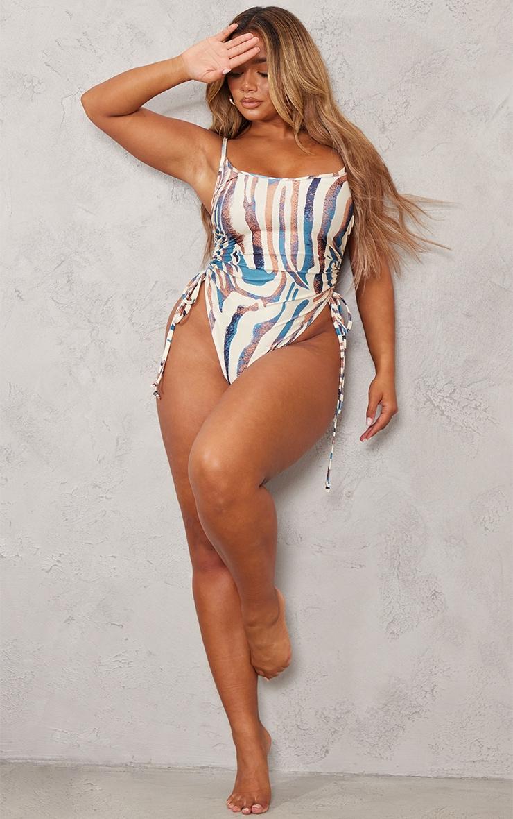 Designed with hourglass figures in mind these curve enhancing tweaks do the most (for both your figure and confidence). PLT Shape looks good on you.Animal print, reimagined. This season's swimwear essential arrives in a stone hue with a considered high-rise silhouette, designed to flatter the figure. The subtle side ruching adds a textural dimension to the piece, drawing the eye and creating a contouring effect. Crafted for the discerning woman who appreciates considered design details, this swimsuit transitions effortlessly from poolside lounging to sun-drenched swims. Enhance the look with oversized sunglasses and delicate gold jewelry for an elevated take on beachside chic. Length approx 73.5cm/29inch (Based on sample size S)Model wears size SModel Height - 5ft 7inchp]:!mb-4inch>Brand: PrettyLittleThingCategory: SwimwearProduct type: SwimsuitColor: StoneMaterial: SwimDesign: PrintOccasion: Day