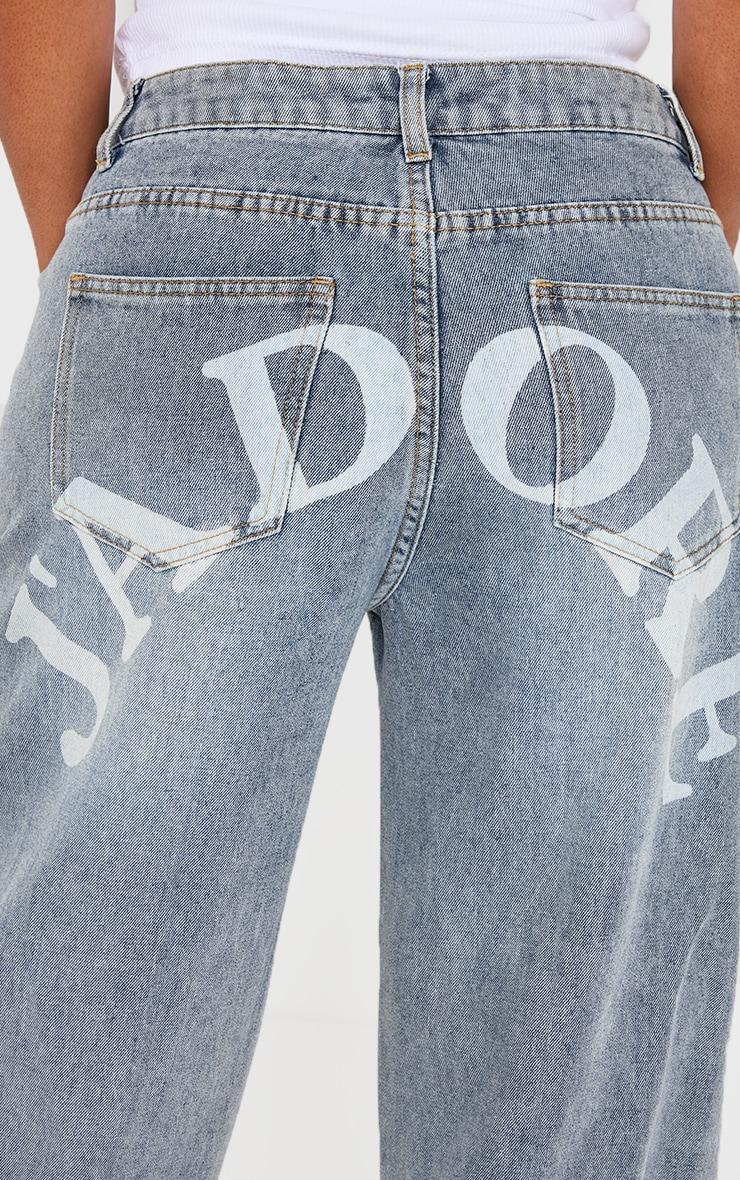 Designed with hourglass figures in mind these curve enhancing tweaks do the most (for both your figure and confidence). PLT Shape looks good on you. Take your denim look to new heights with these shape vintage light wash low rise washed Jadore print wide leg denim jeans. Made from a vintage light wash denim material with a 'Jadore' print design and a wide leg fit, how can you go wrong? Style these denim jeans with a vest top and a mini bag for a look that won't go unnoticed. Length approx 81cm/32inch (Based on sample size S)Model wears size SModel Height - 5ft 5inchp]:!mb-4inch>Brand: PrettyLittleThingCategory: DenimProduct type: Straight Leg JeansColor: Vintage Light WashMaterial: TwillOccasion: Day