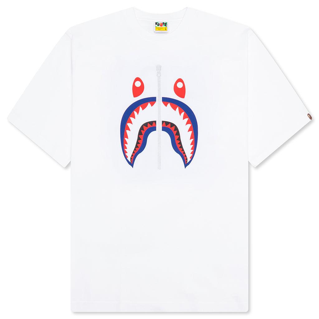 The Shark Tee from BAPE is crafted from 100% cotton and features a rib-knit crewneck for a comfortable fit, while the iconic shark graphic takes center stage across the front. A logo flag at the cuff adds a subtle branded touch, paired with statement text printed at the back to complete the look. 100% Cotton Crew neckline Screen-printed graphics Woven label tag Ribbed trims Style No: 001TEK701306M-WHT 1K70 110 306 WHITE