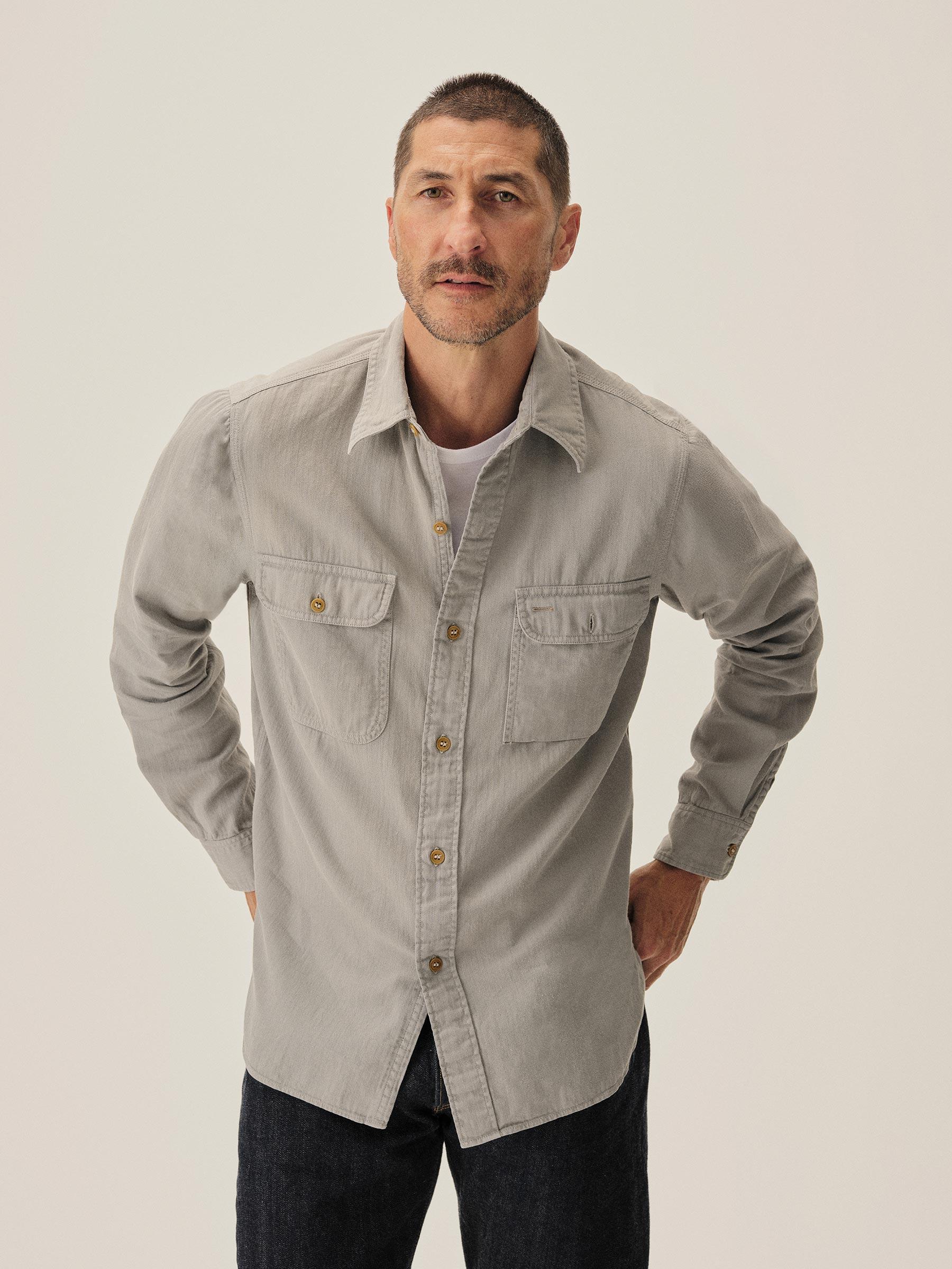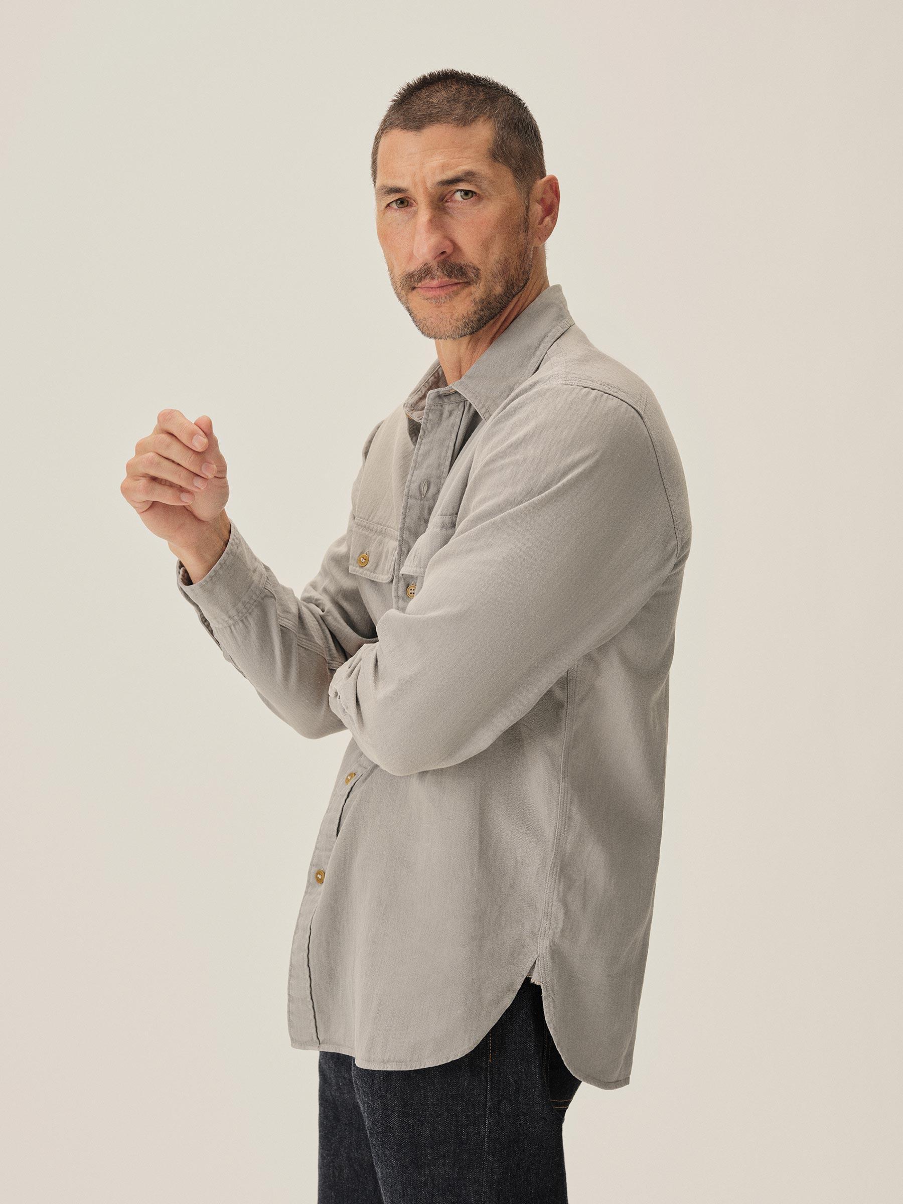 Sharkskin Grey Hemp HBT Soft Pack Station Shirt - Buck Mason- Modern American Classics