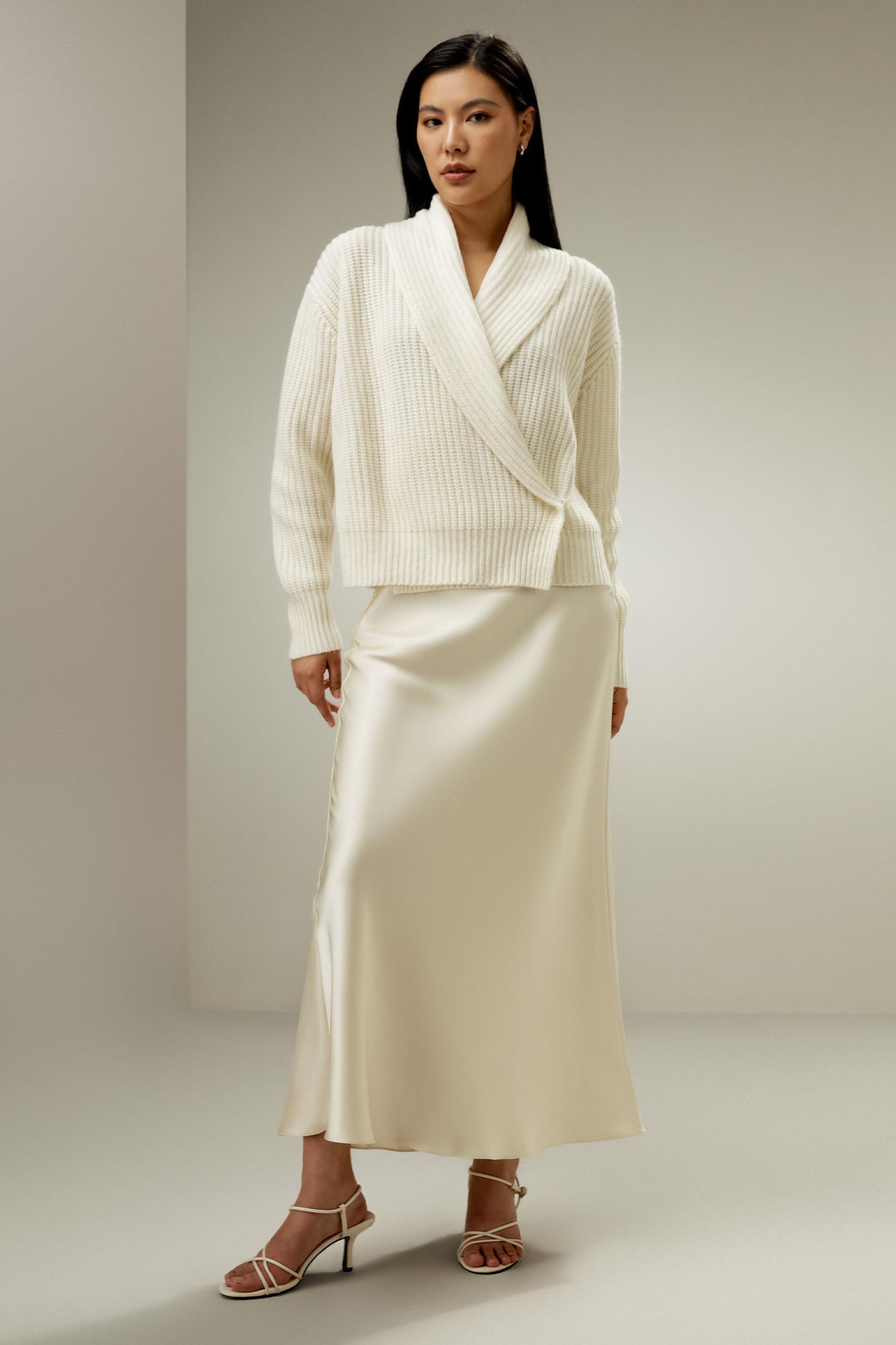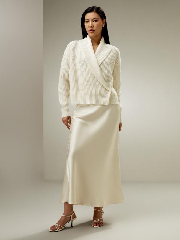 Shawl Collar Drop Shoulder Knit Cardigan
