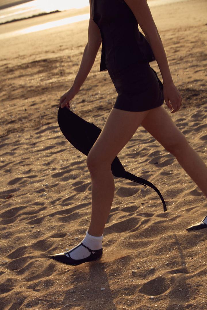 A love letter to the timeless Tropezienne style of Brigitte Bardot–the Shawna black mini skirt is the perfect balance of chic and sleek. This low-waisted mini skirt features princess darts in front and back for a flattering and a fitted silhouette.