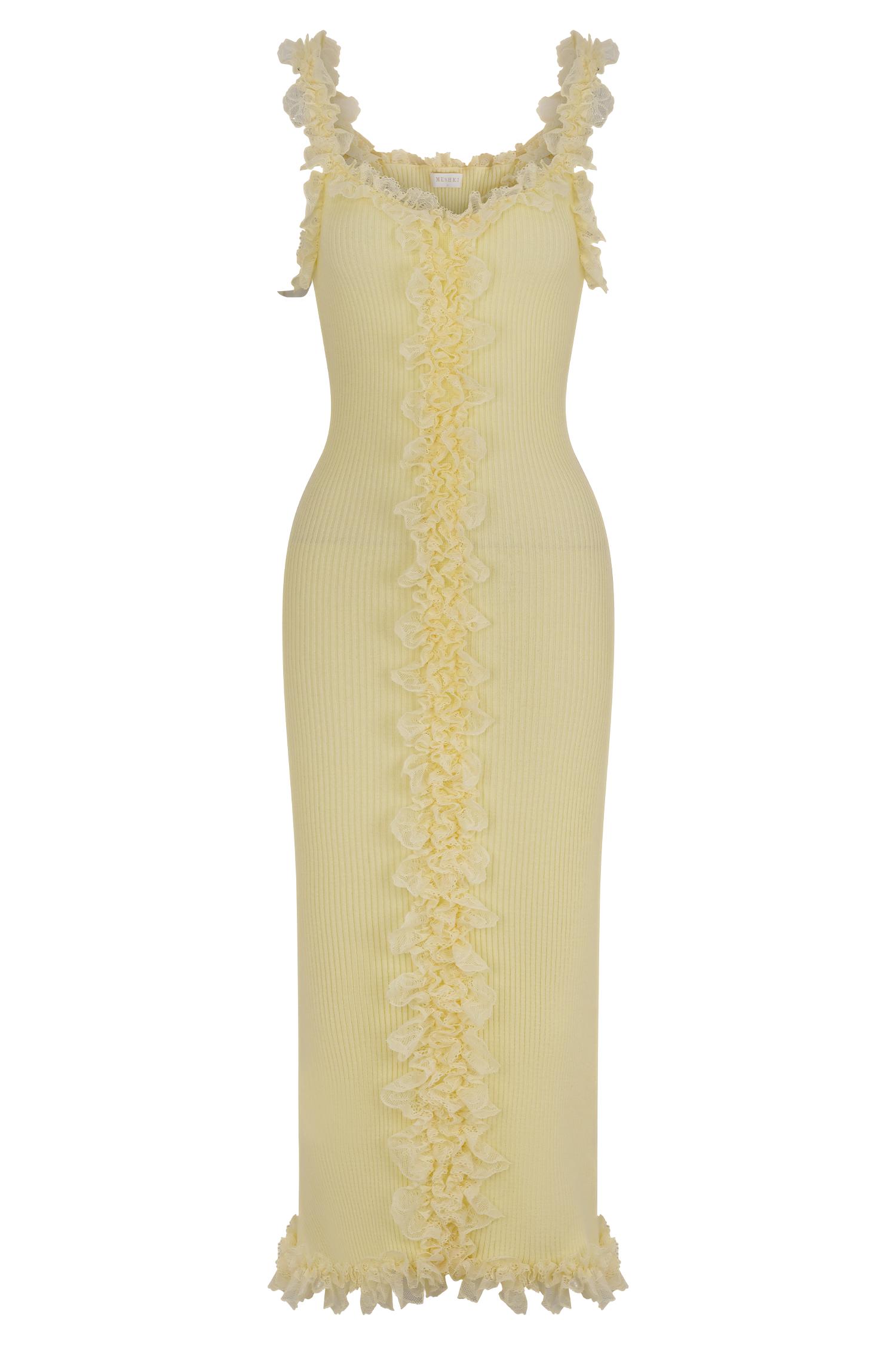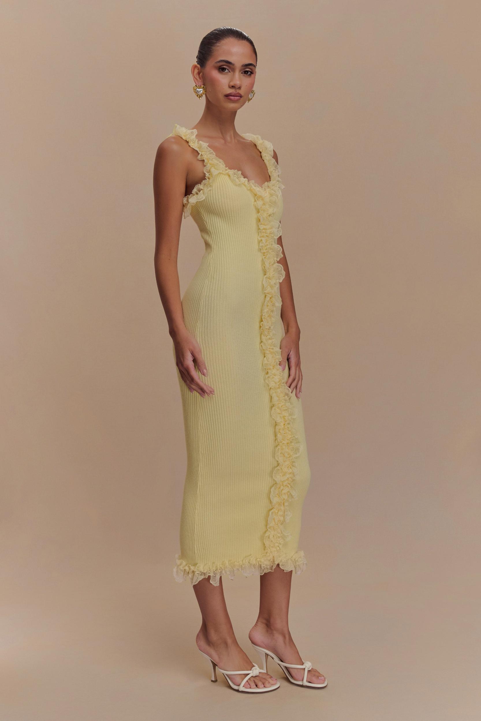 Shay Lace Ruffle Knit Midi Dress - Lemon