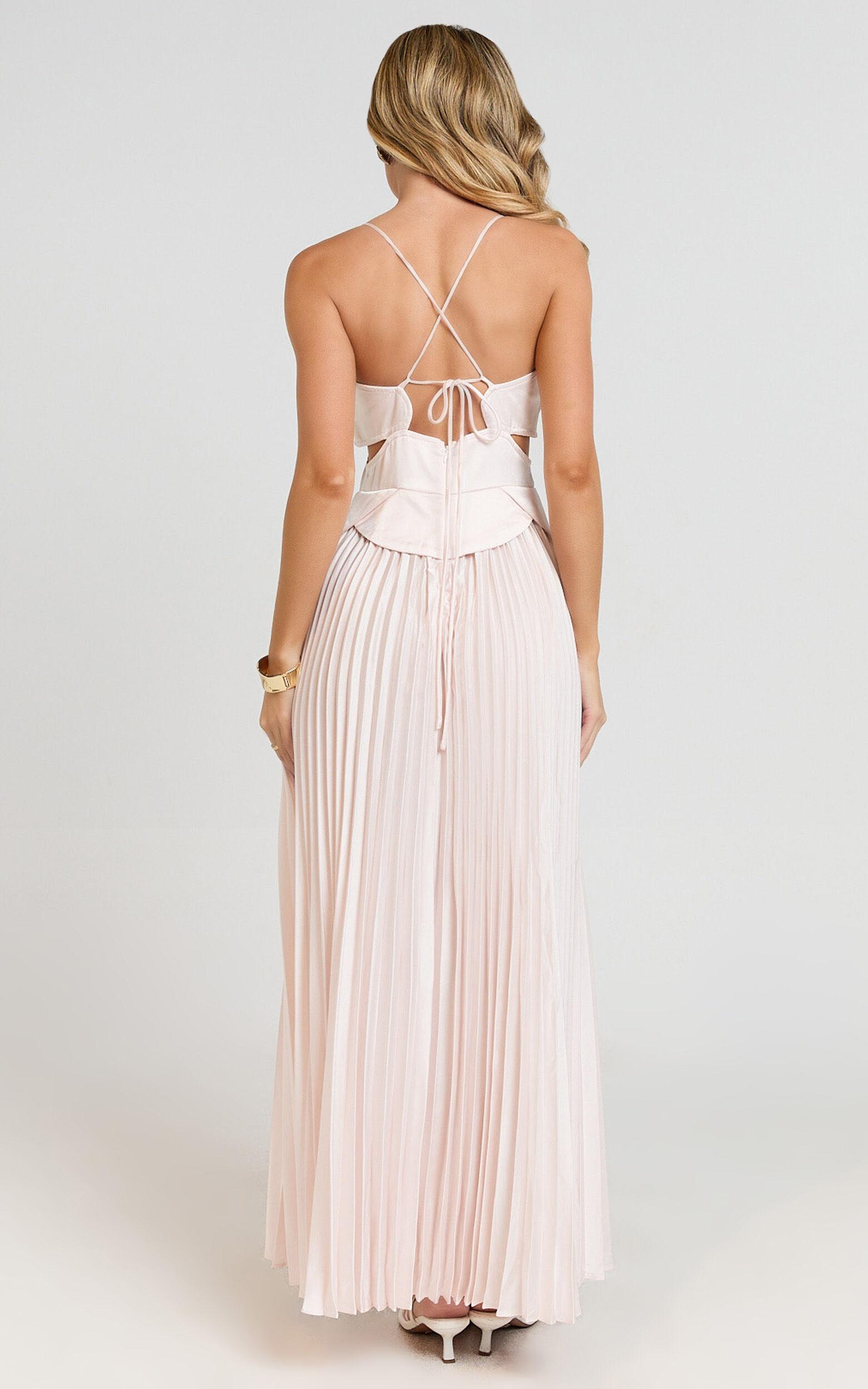 Shay Maxi Dress - Sweetheart Cut Out Pleated Dress in Soft Pink