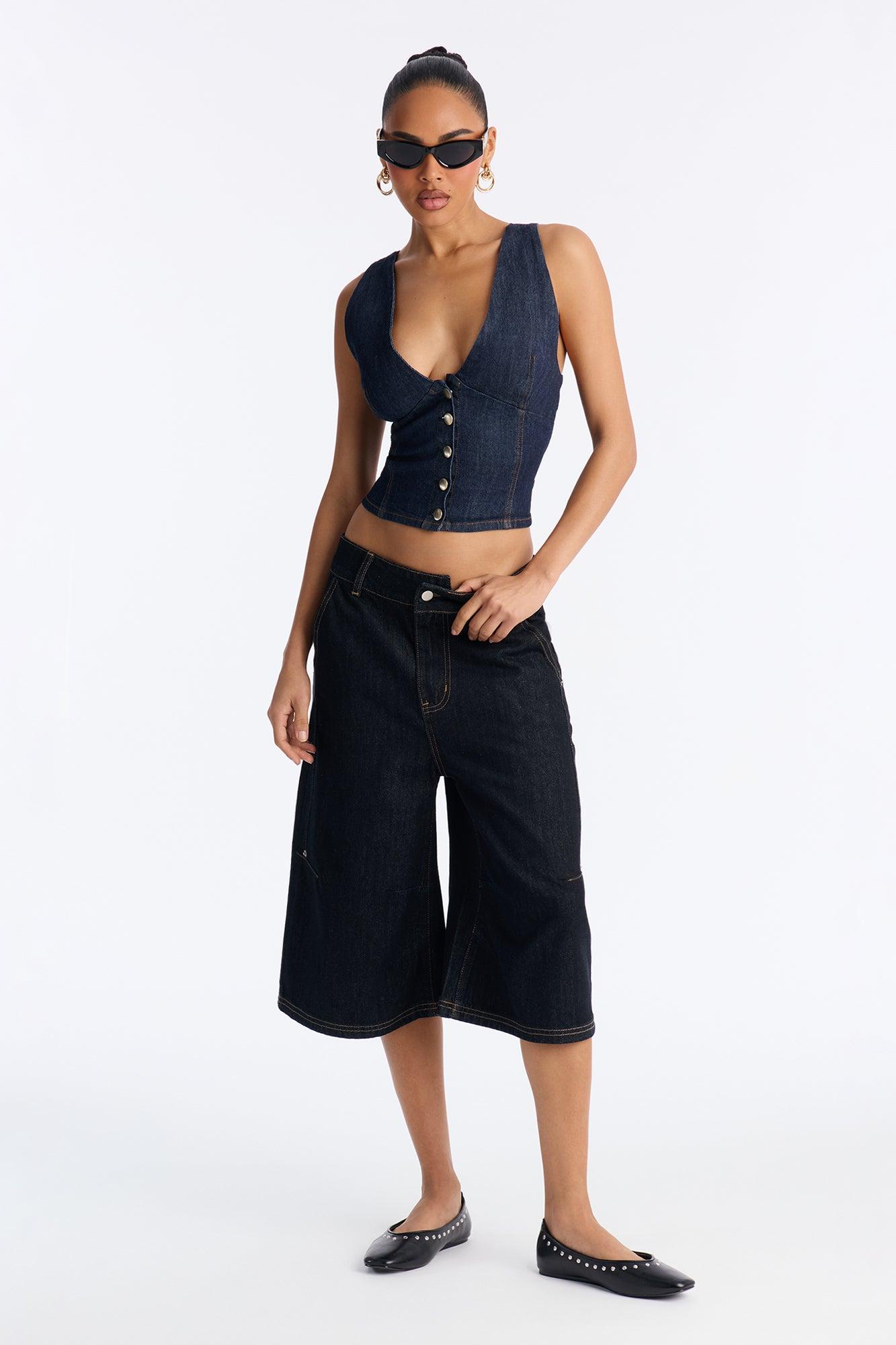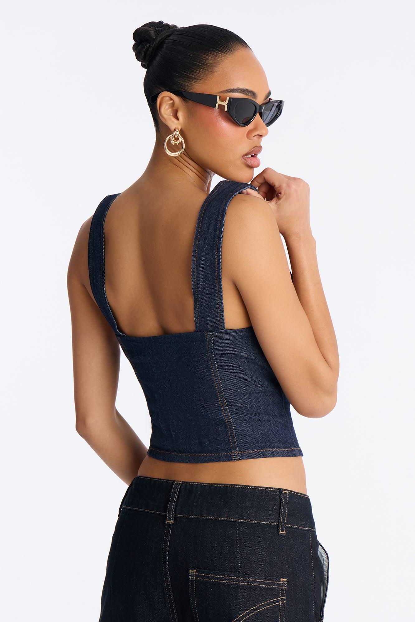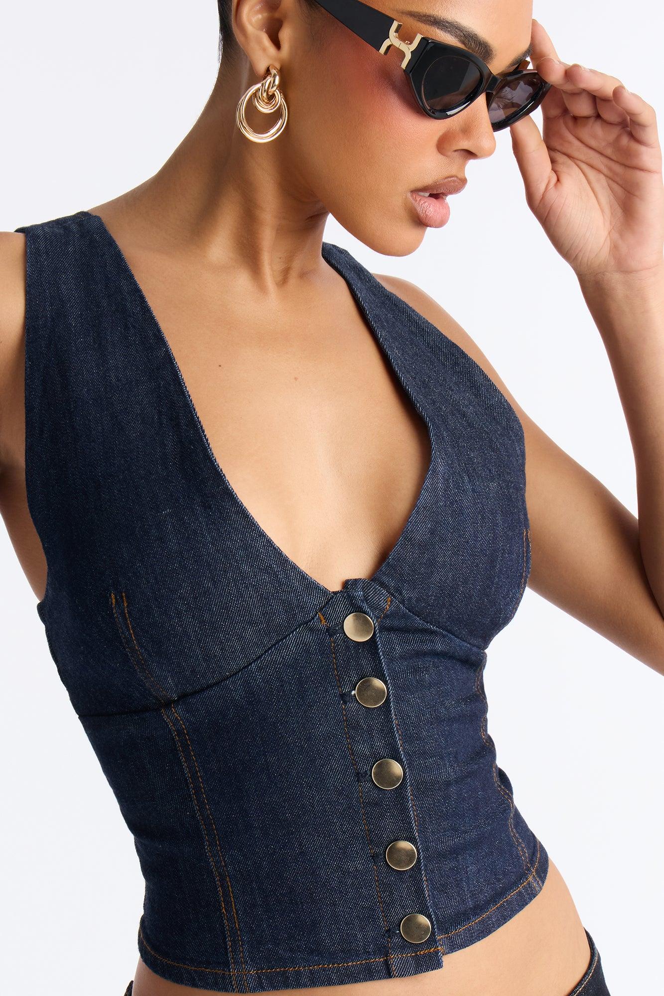 Shayla Denim Button Up Vest Top - Indigo Female