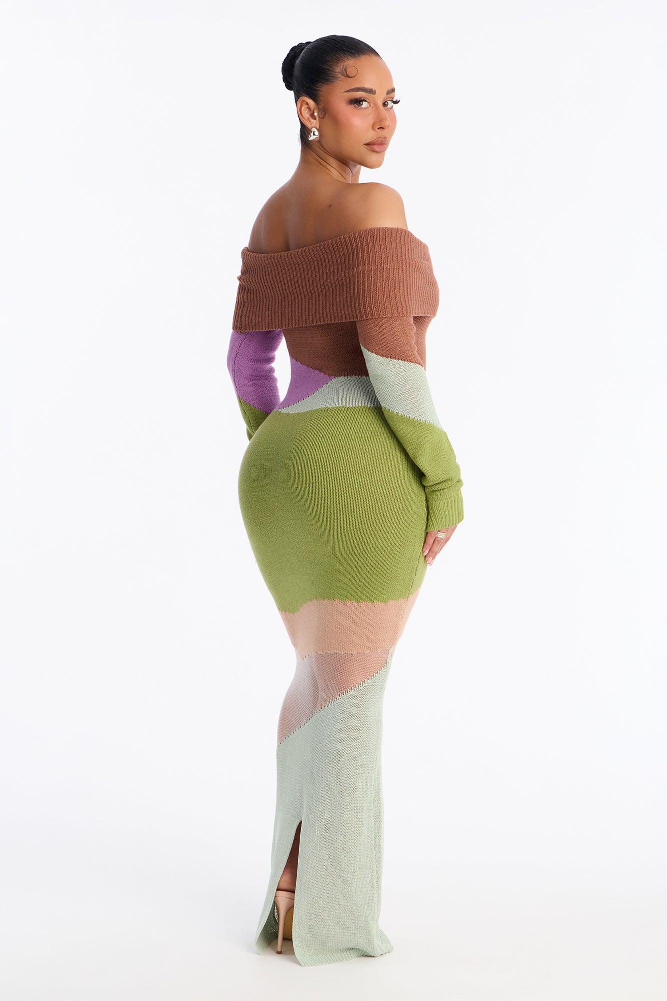 Shayna Off Shoulder Sweater Maxi Dress - Green/combo Female